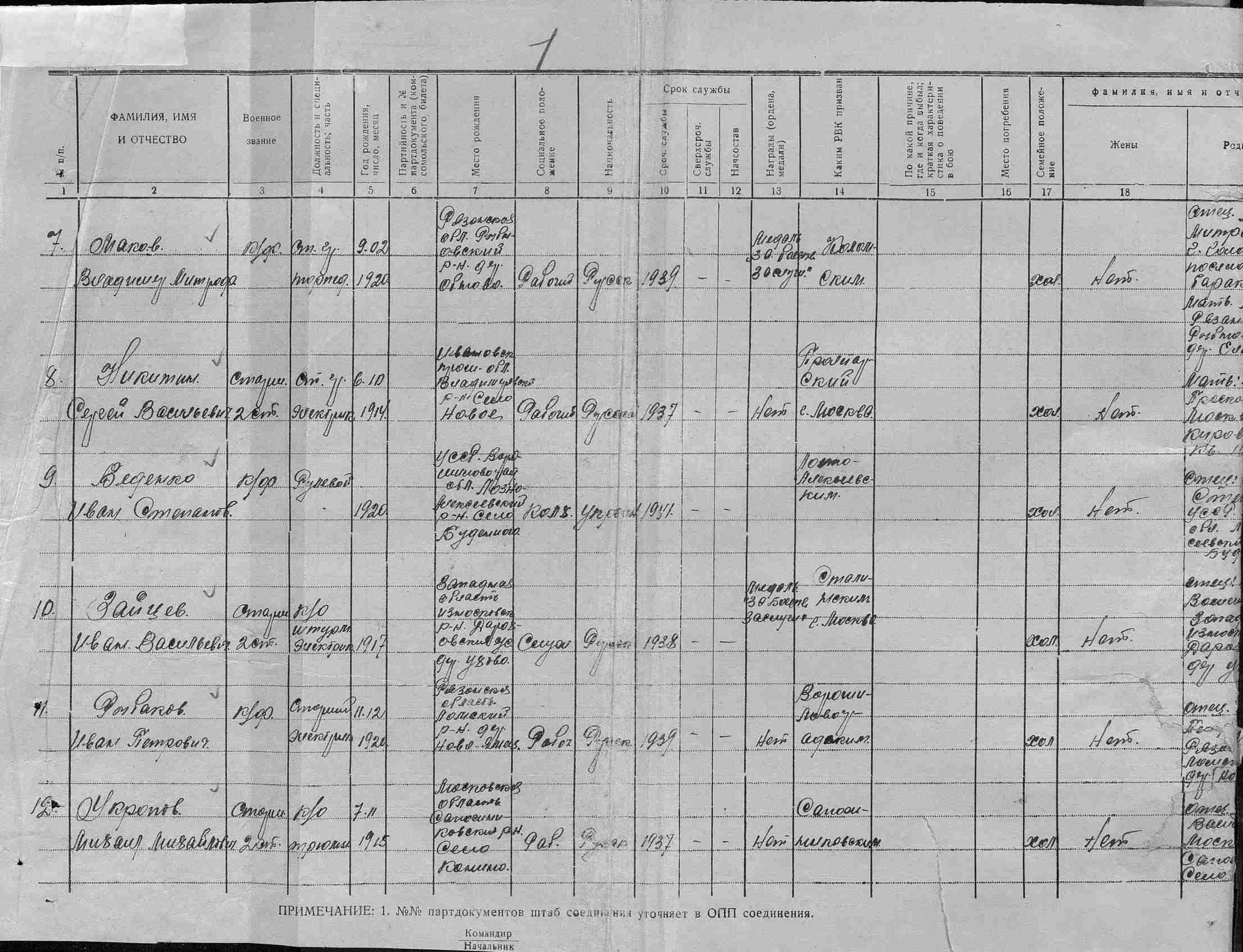 Место рождения Тамбовская обл., Б.-Марфинский р-н, Грачевский с/с, д. 2 Грачевка
