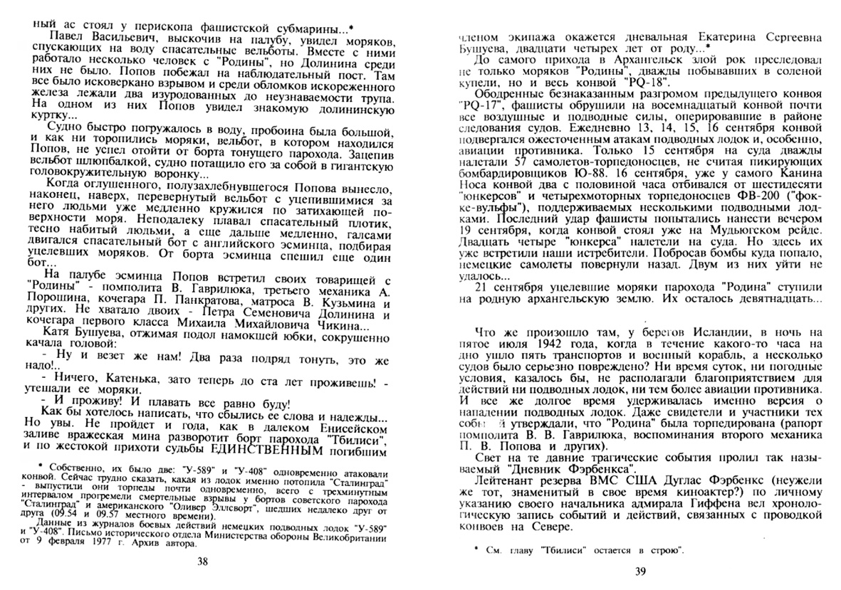 Несмотря на усталость, моряки "Родины" были горды тем, что с честью выполнили задание, что танки и самолеты, доставленные ими, будут громить врага как бы и от их имени. Во имя победы люди были готовы к новым походам, новым испытаниям и опасностям. И судьба выдала им эти испытания. Выдала полной чашей, перелитой через край...