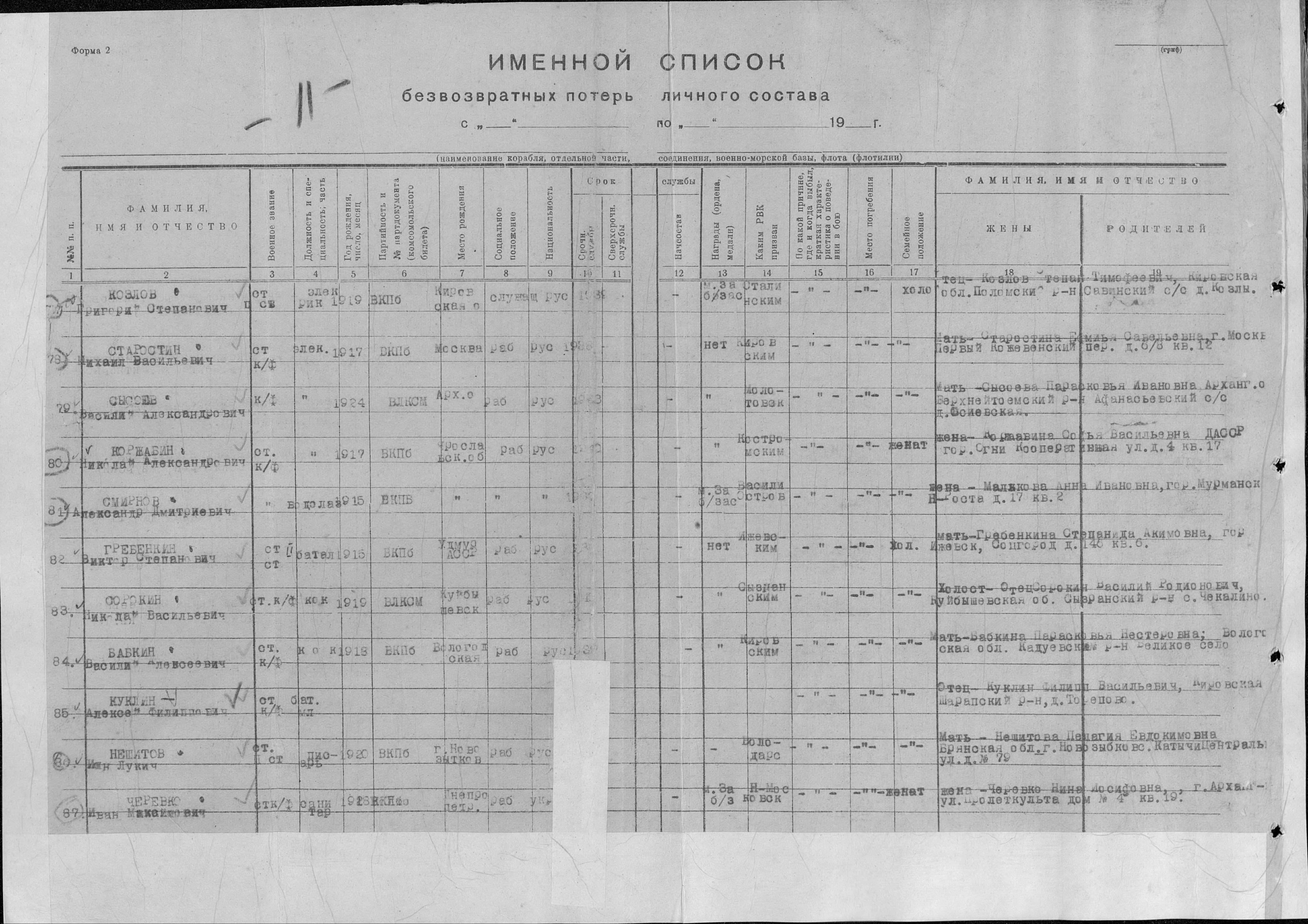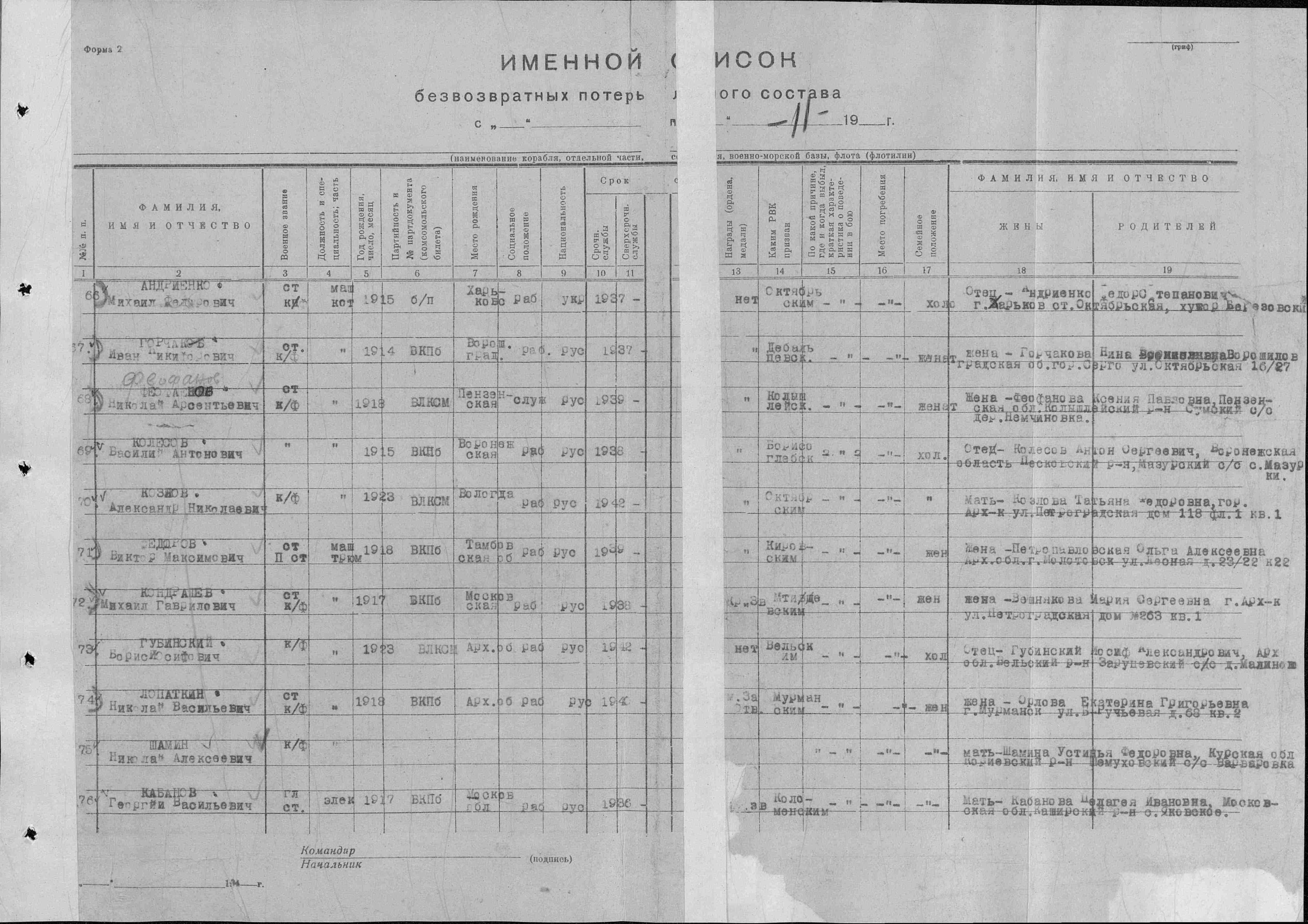 Примечание (padsee): Ф.И.О., (19) выделенные красным цветом, отличаются от других документов в ОБД «Мемориал» приведенных в этой теме выше.