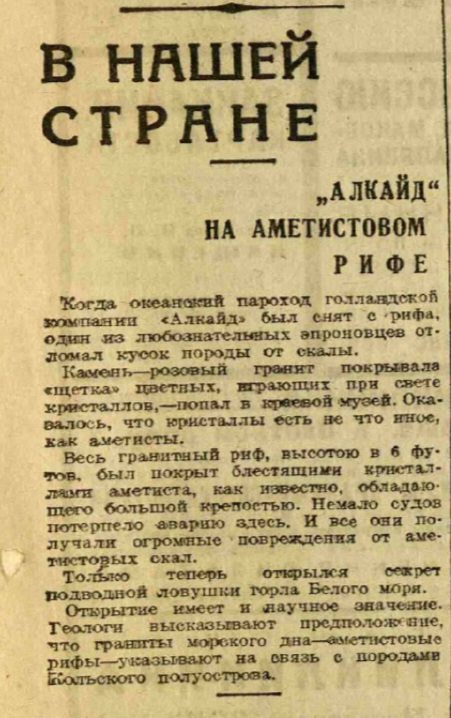 "Алкайд" на аметистовом рифе//Вечерняя Москва, 15 января, 1934, № 13 (3042)