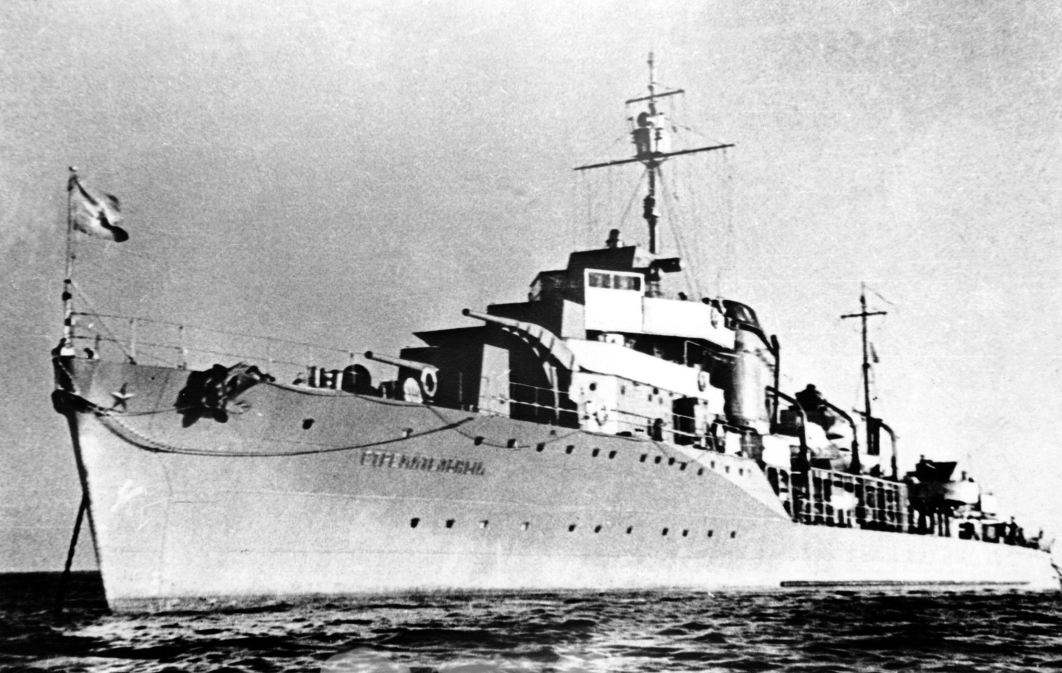 Командира корабля капитана 2?го ранга А. Д. Виноградова на борту не было, поскольку его вызвали в штаб флота. Но зато на эсминце, вероятно, по случаю проходившего там культурного мероприятия, были сразу два вышестоящих начальника: начальник отдела политуправления флота В. М. Лободенко и командир 1-го дивизиона эсминцев капитан 1-го ранга В. А. Фокин.