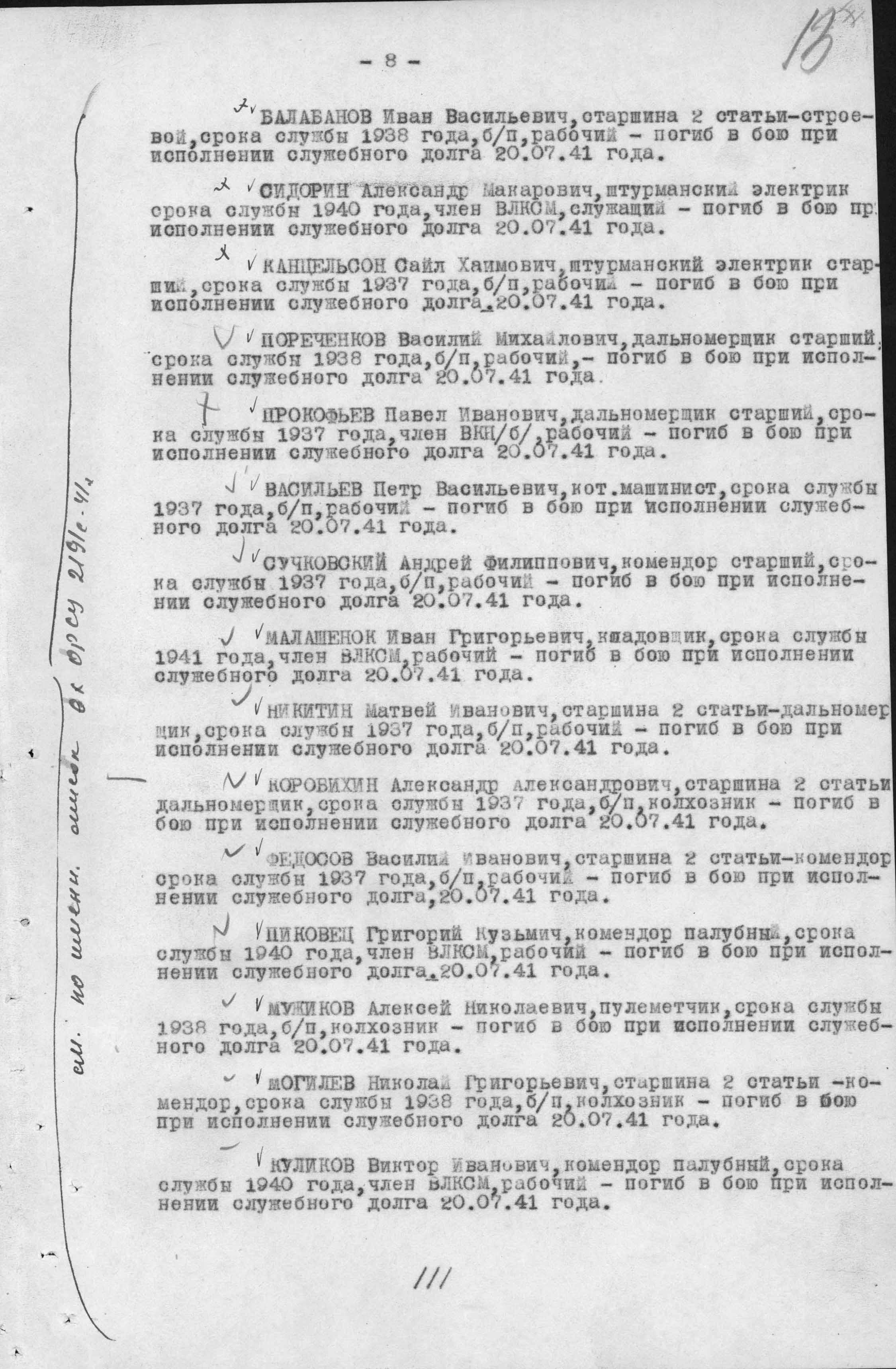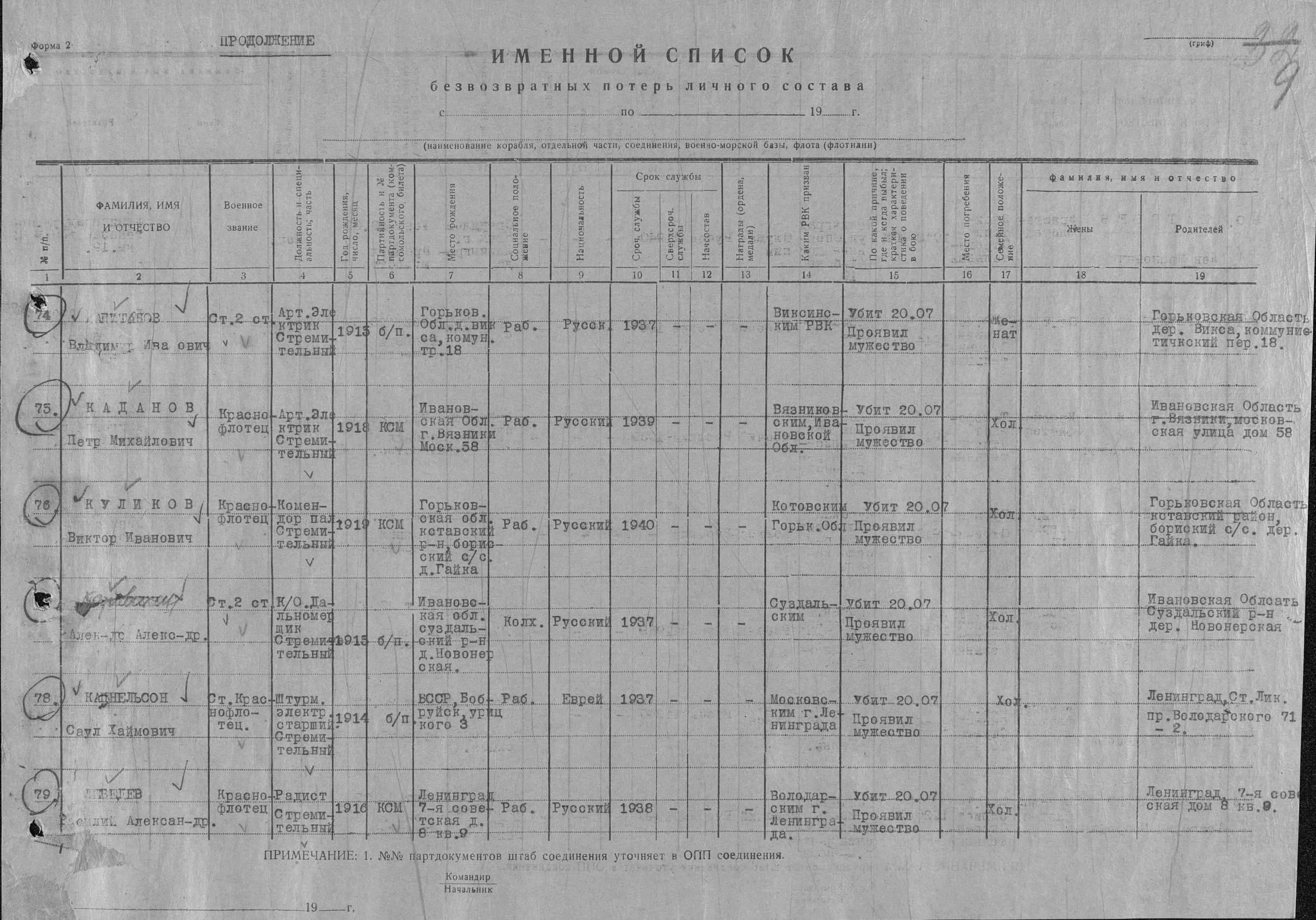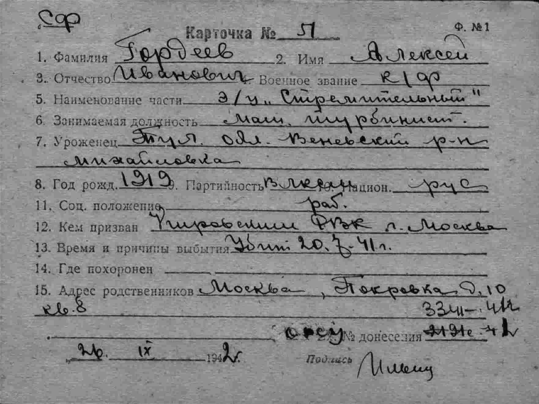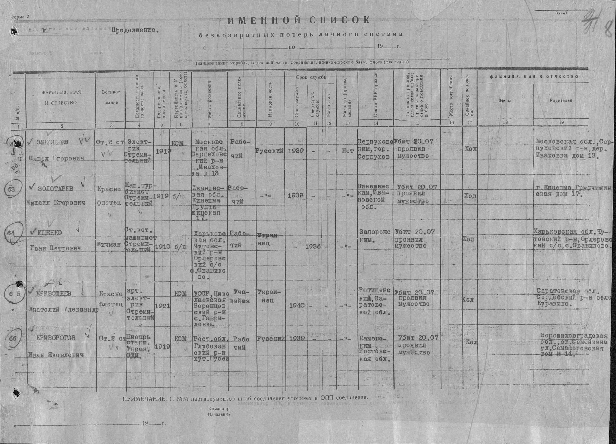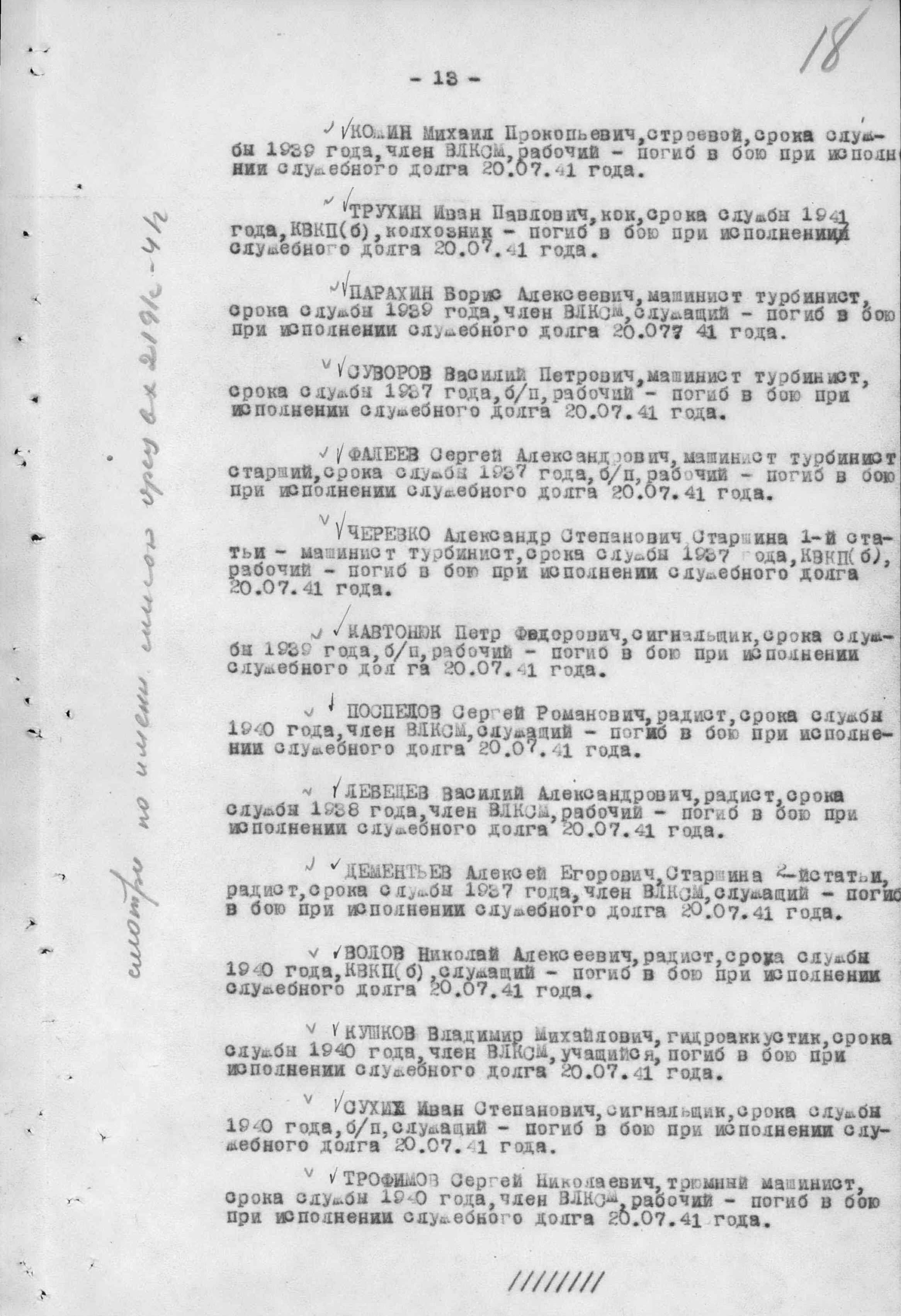 Список военнослужащих СФ погибших на ЭМ "Стремительный" 20 августа 1941 г. в Полярном: