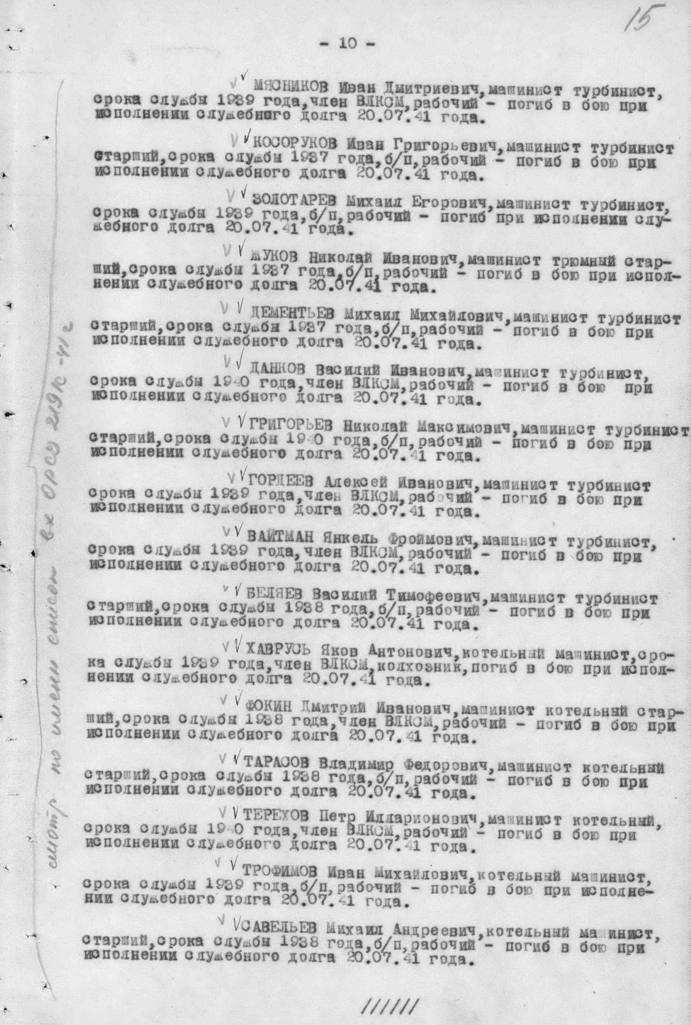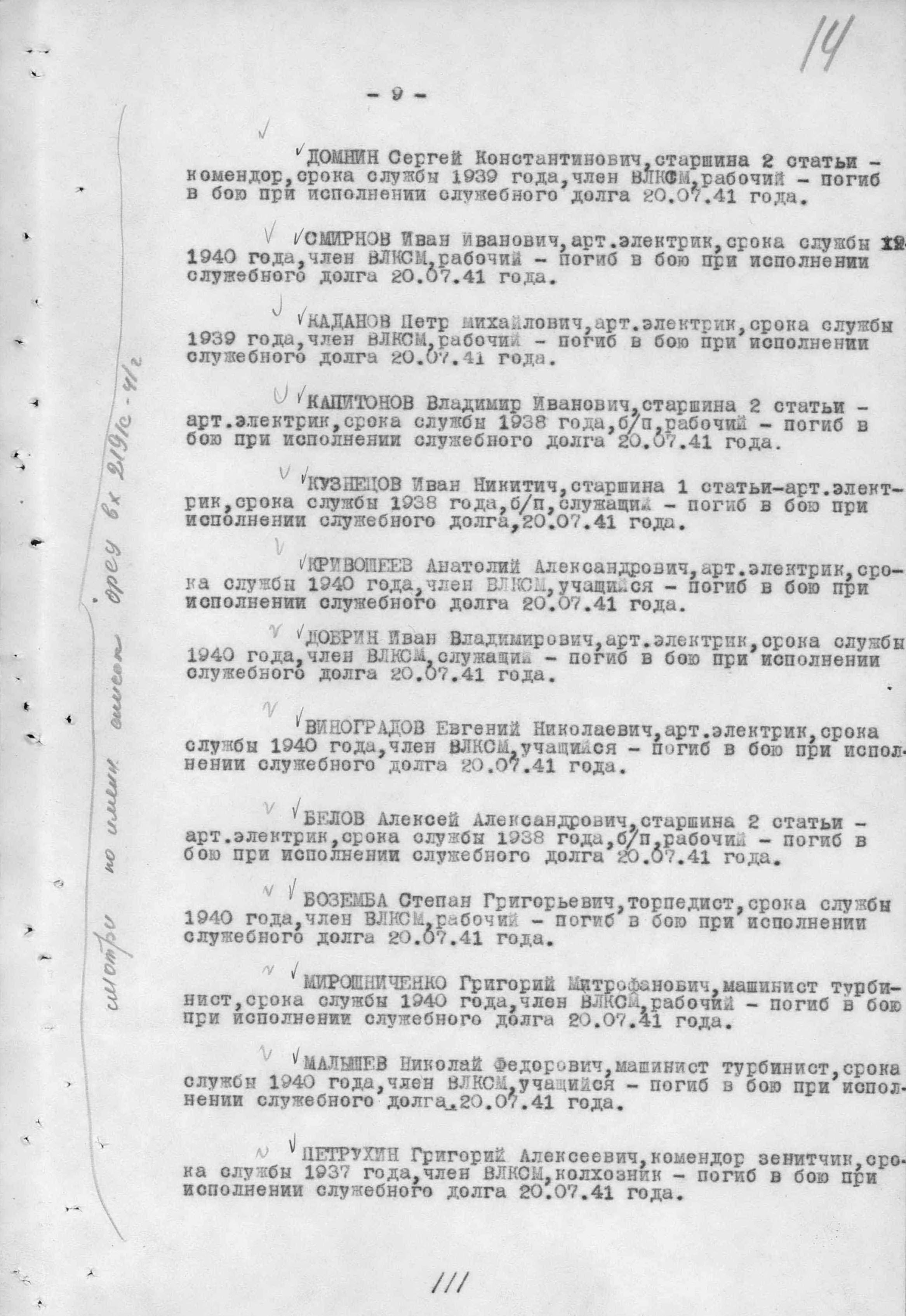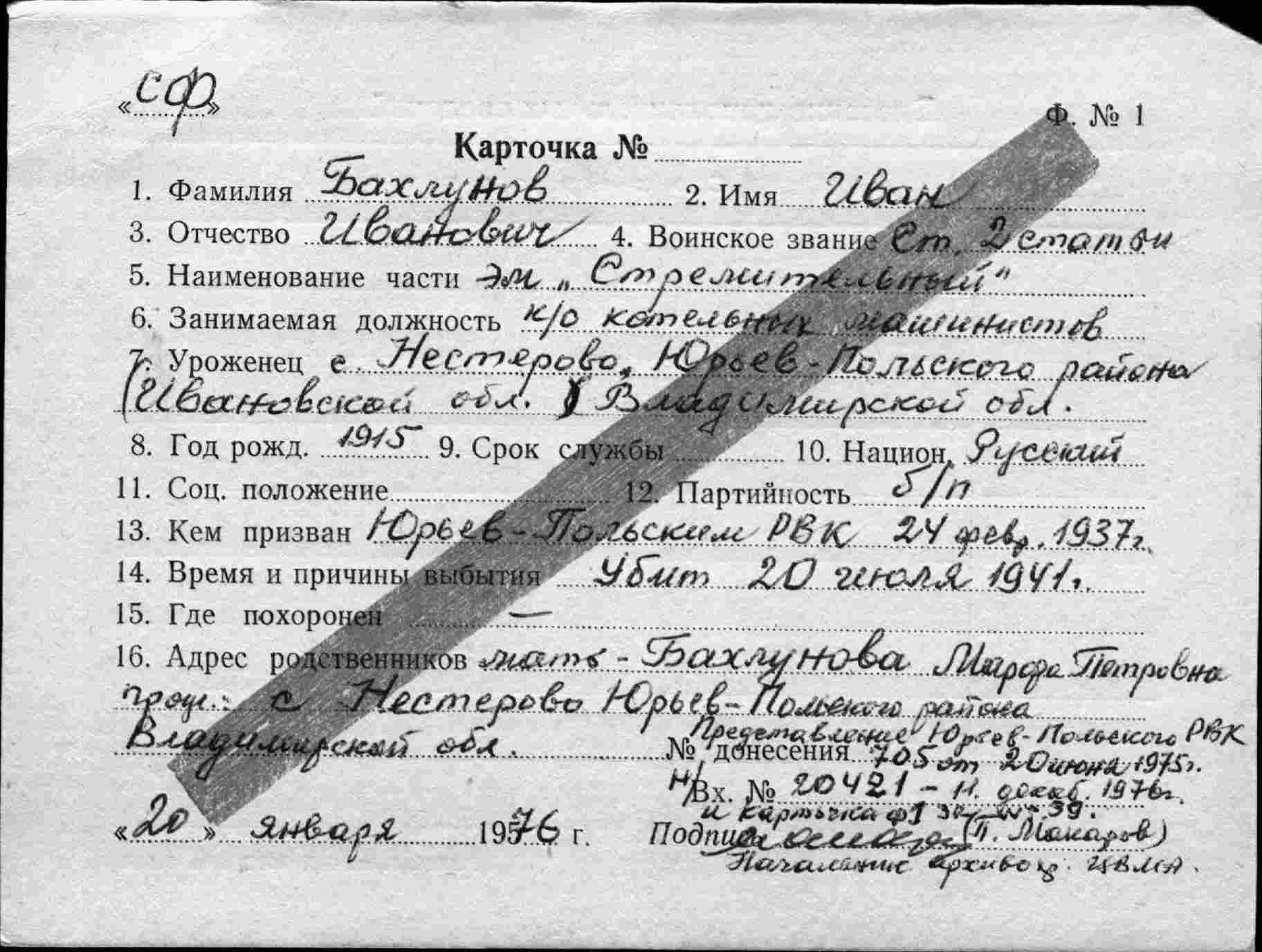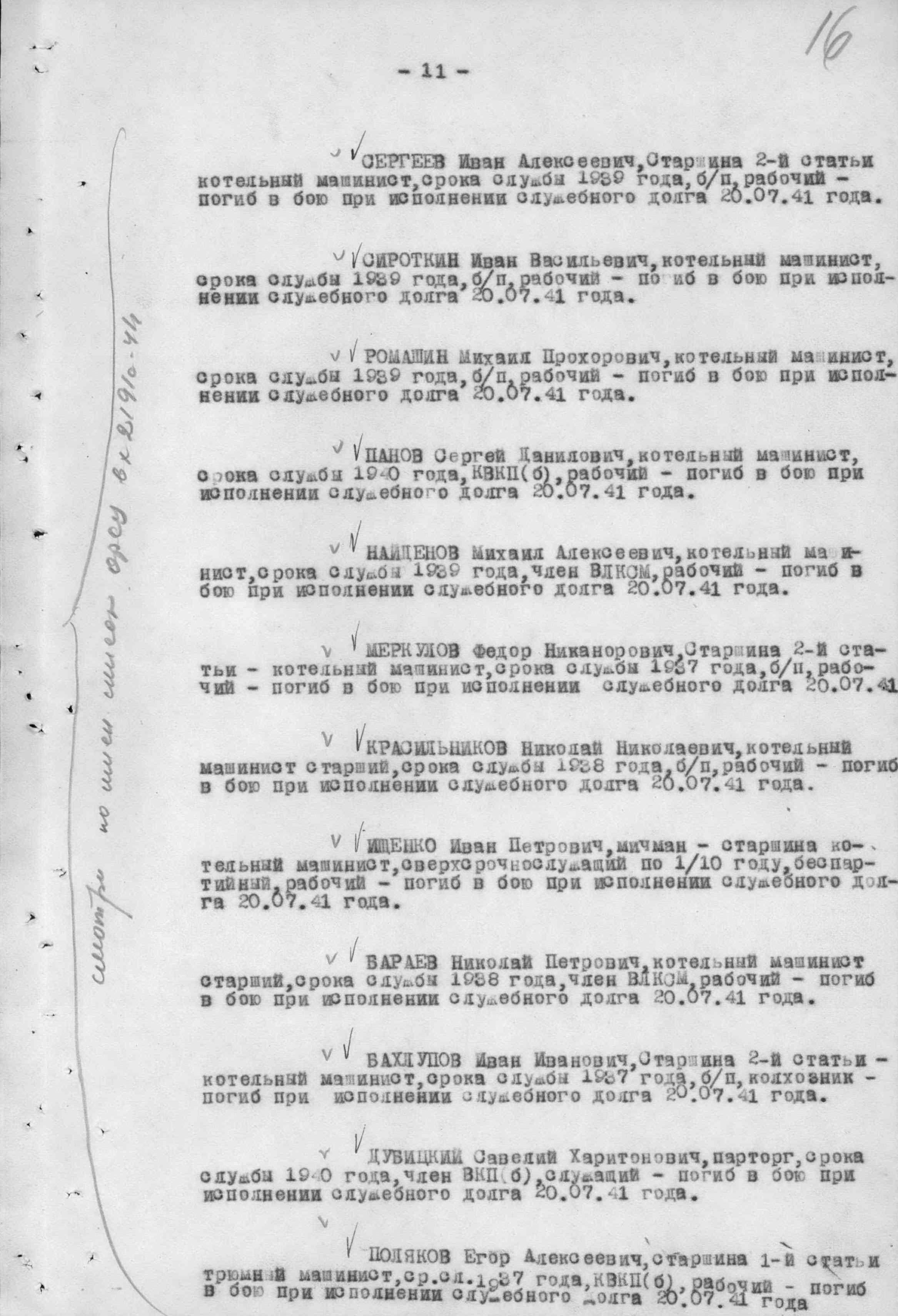 Список военнослужащих СФ погибших на ЭМ "Стремительный" 20 августа 1941 г. в Полярном: