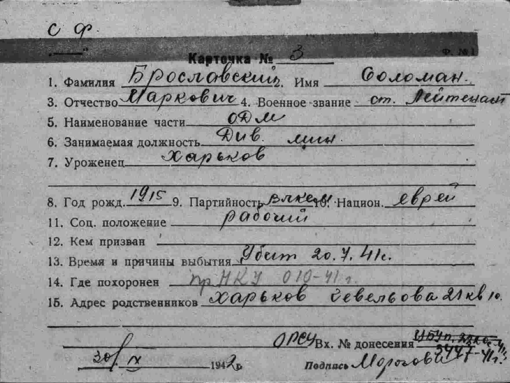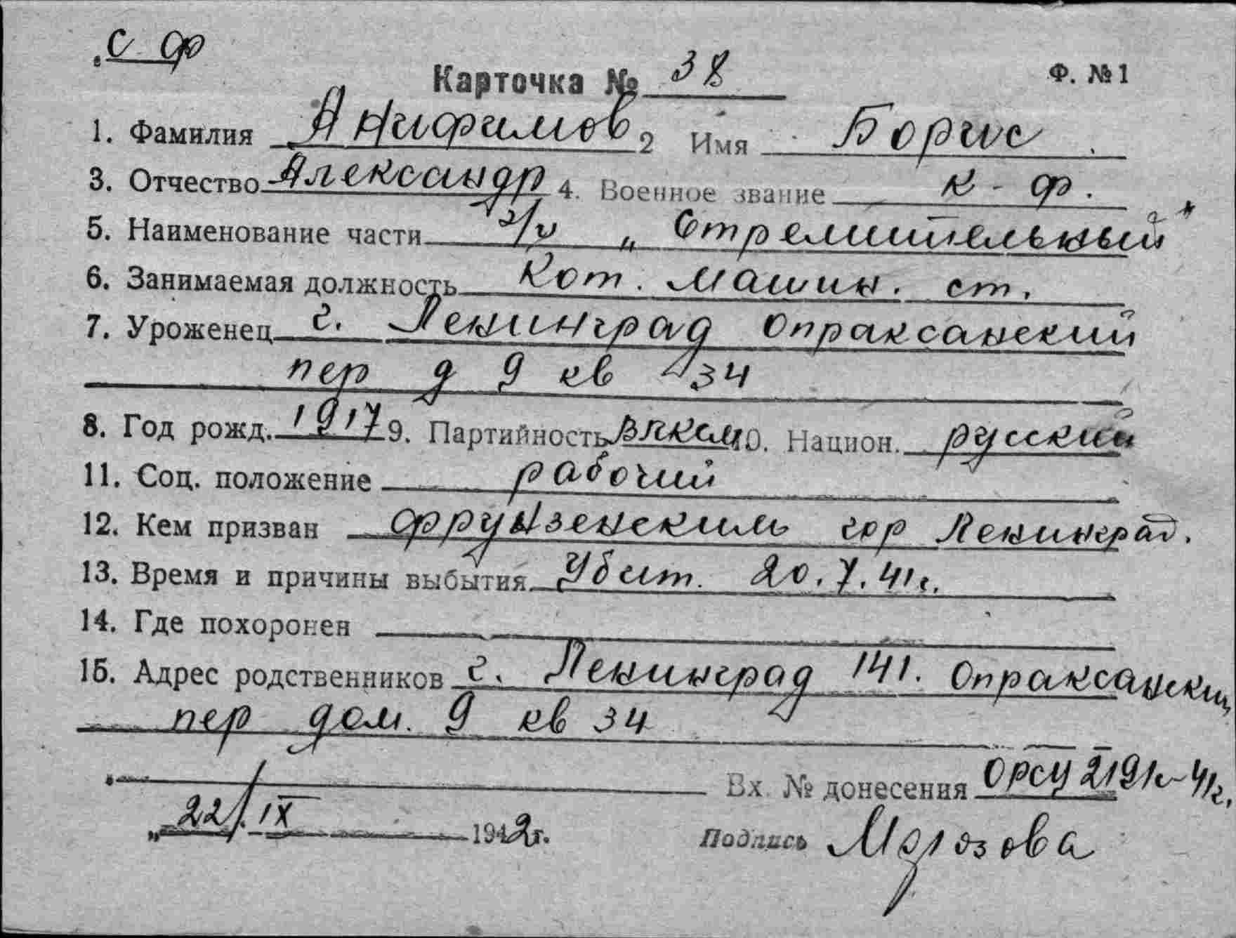 (СПИСОК БЕЗВОЗВРАТНЫХ ПОТЕРЬ №388с от 21 августа 1941 г.,ОрСУ СФ)