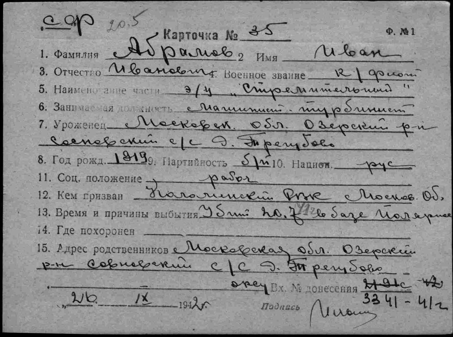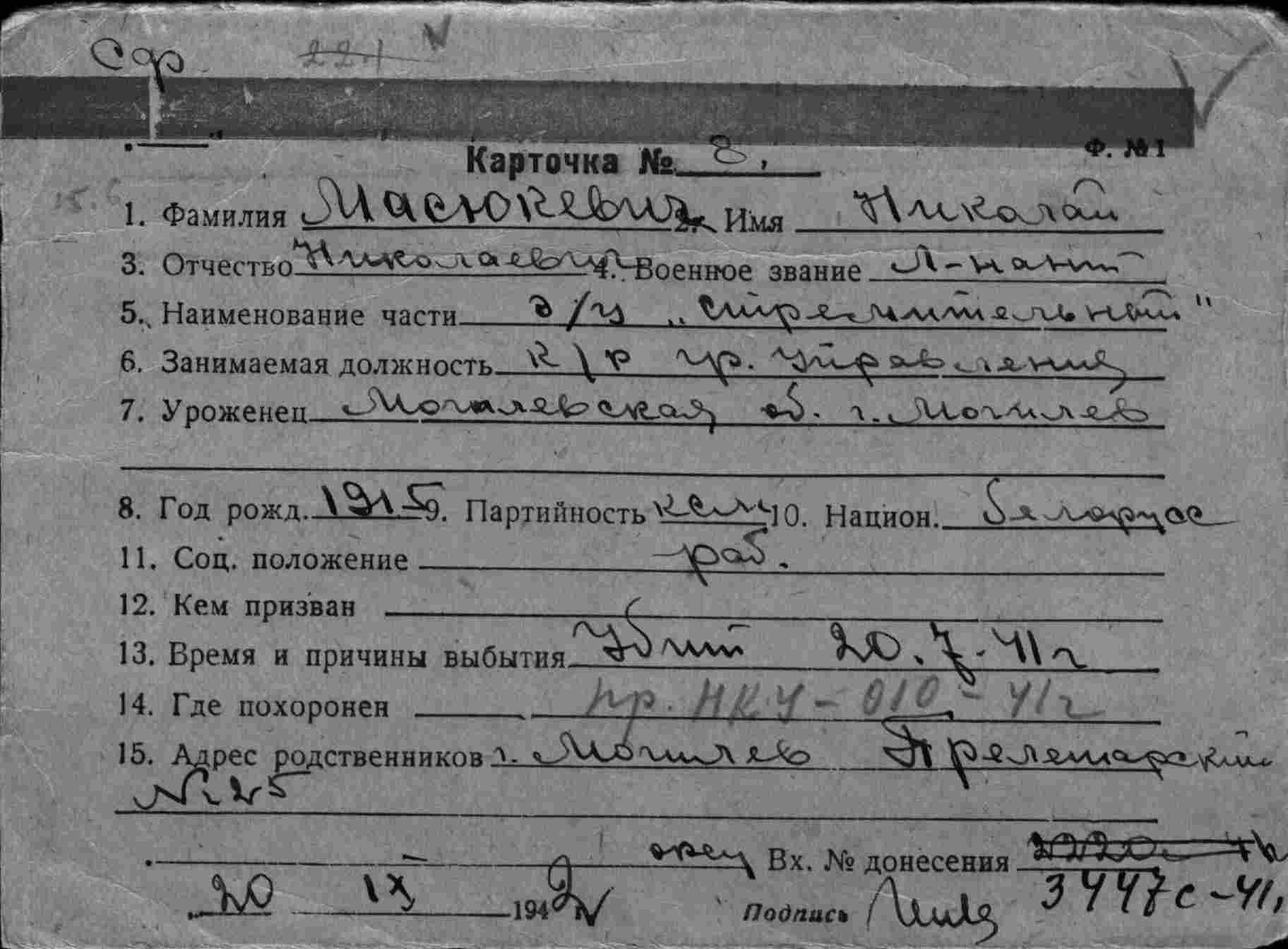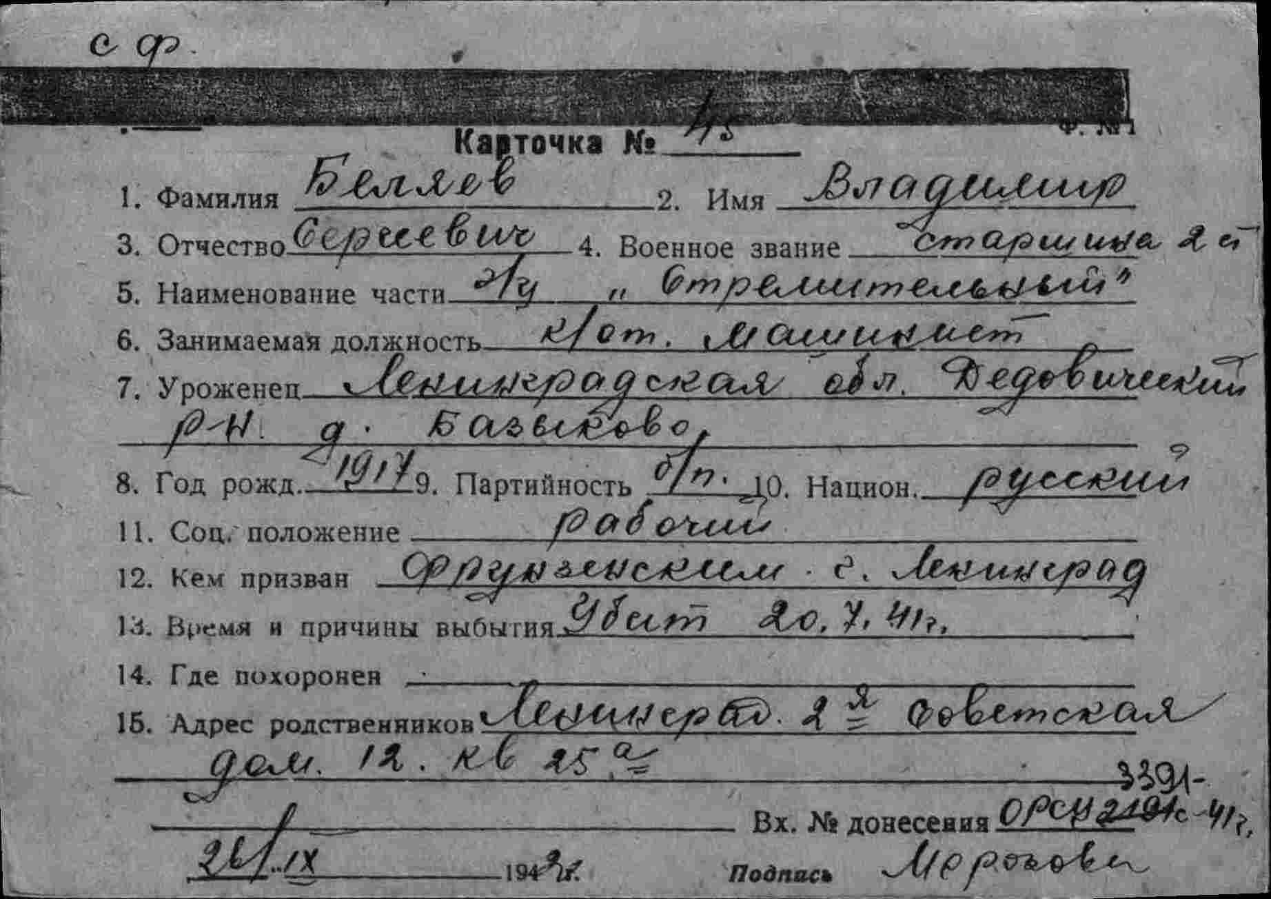 Дата выбытия 20.07.1941