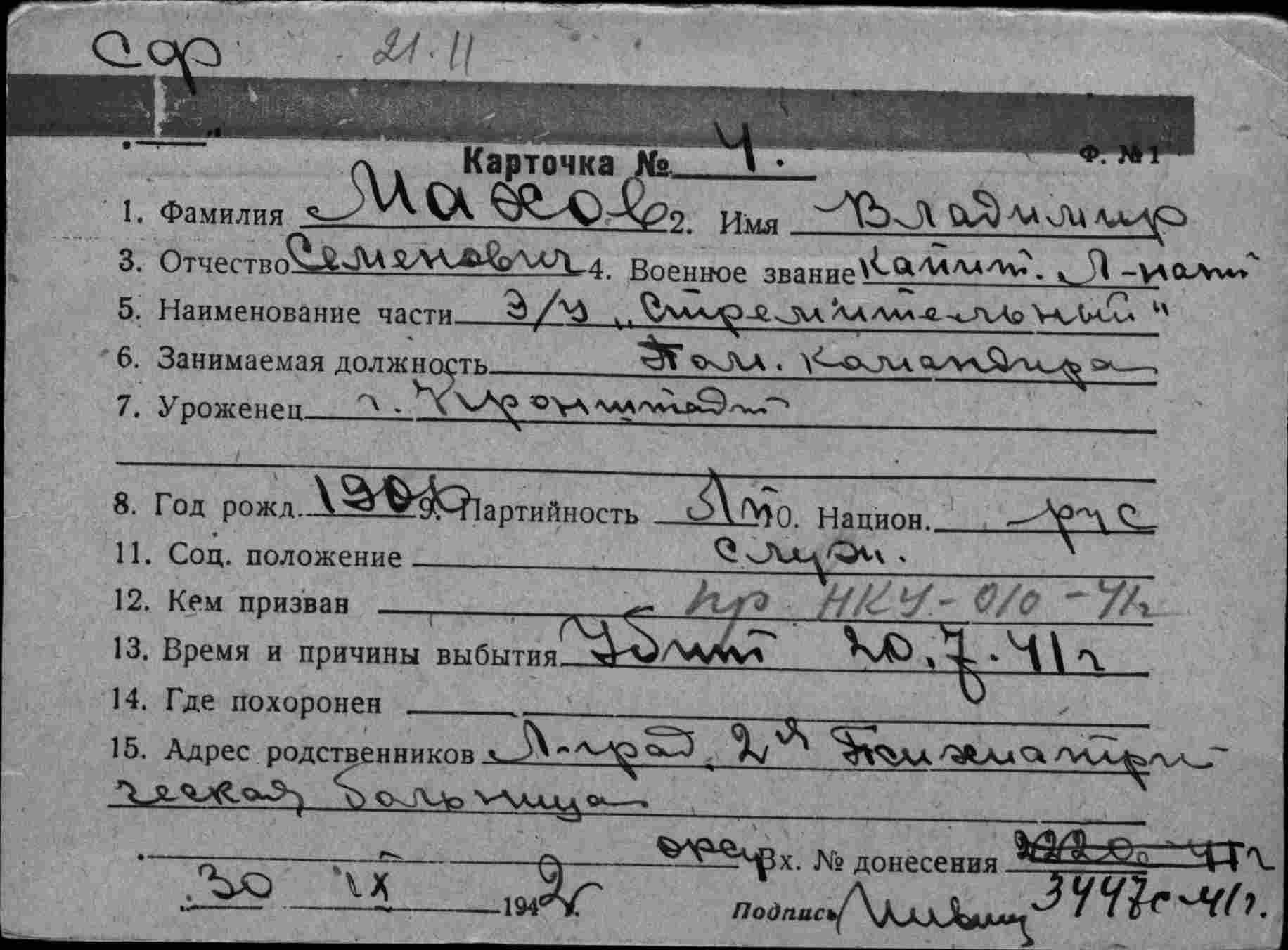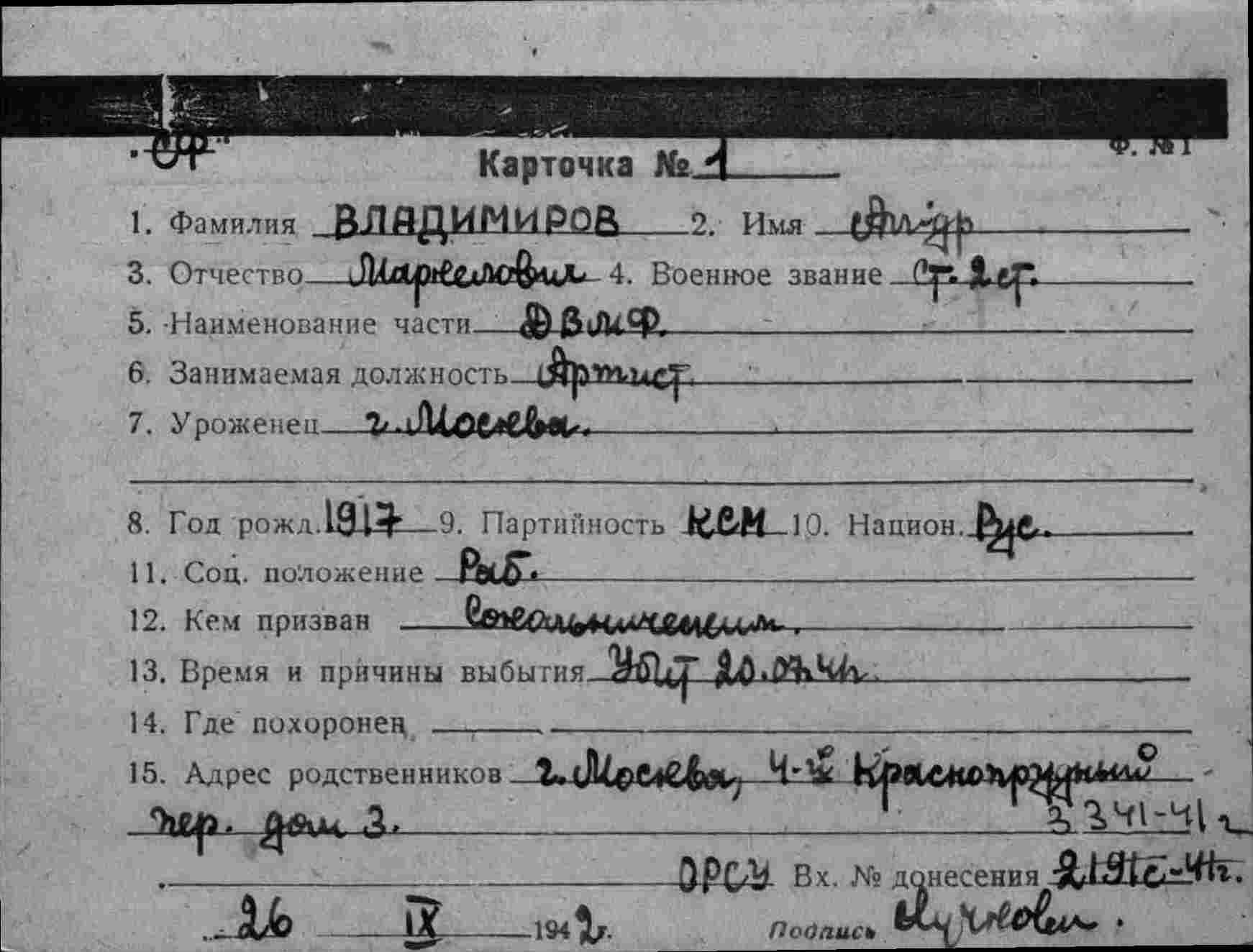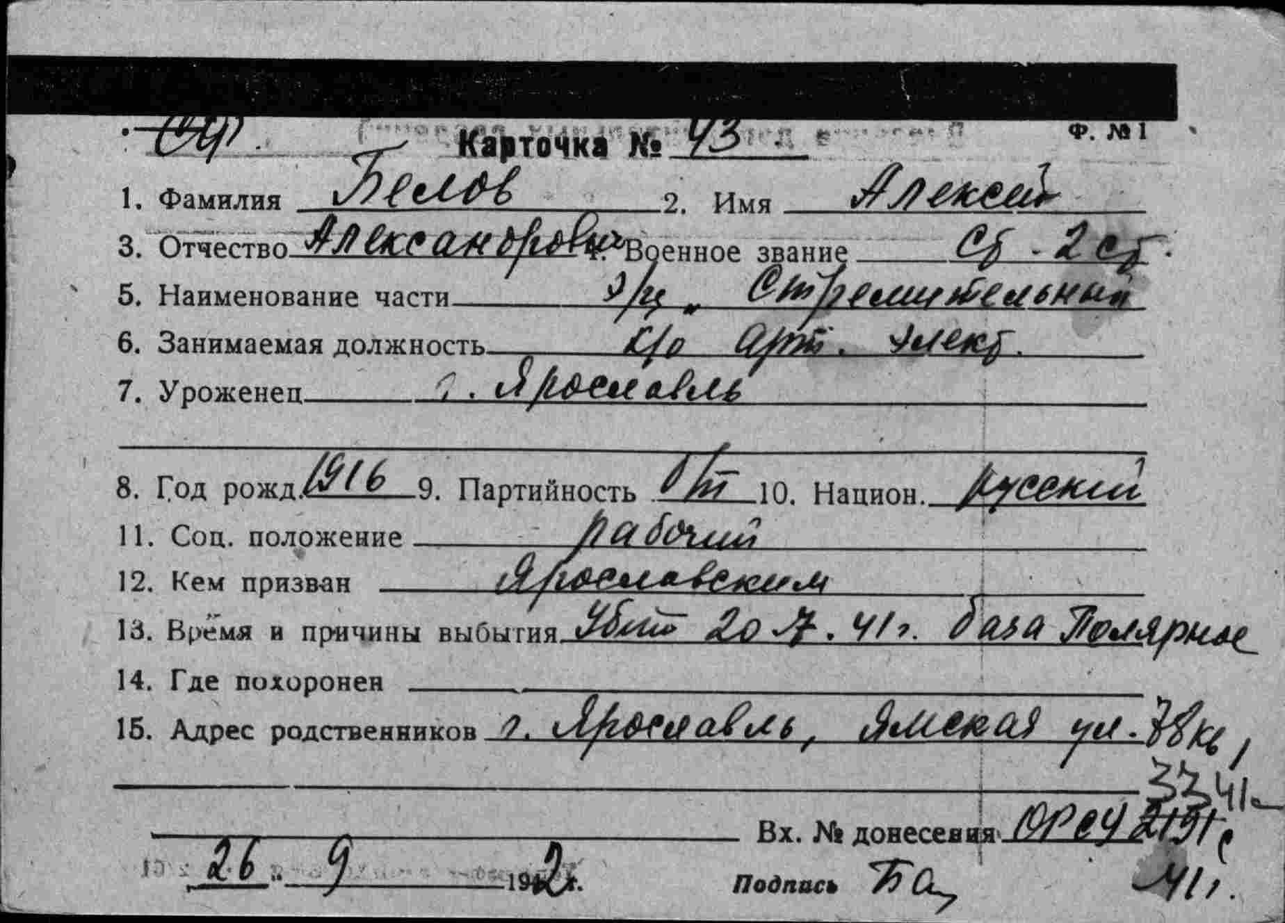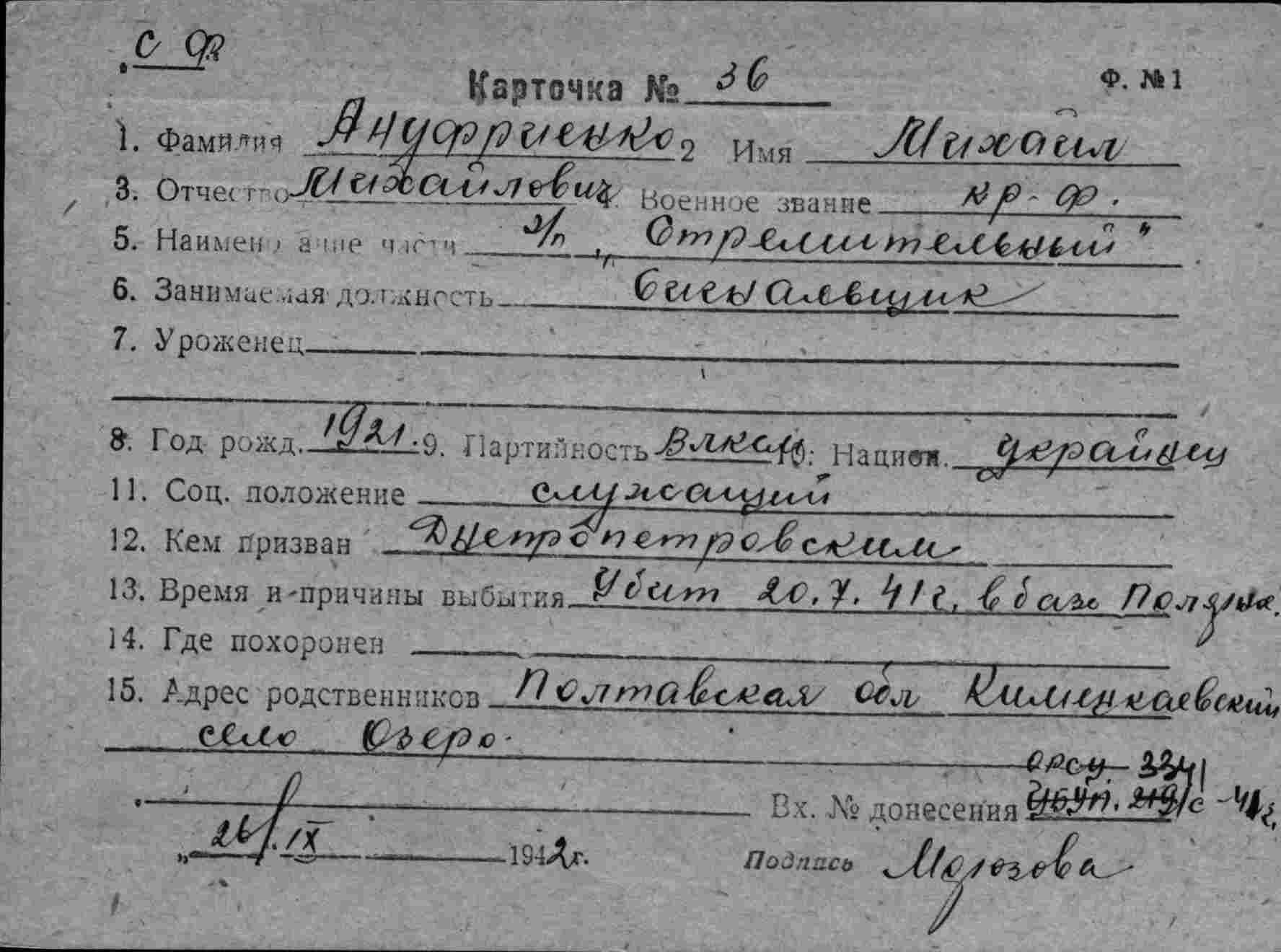 Дата выбытия 20.07.1941