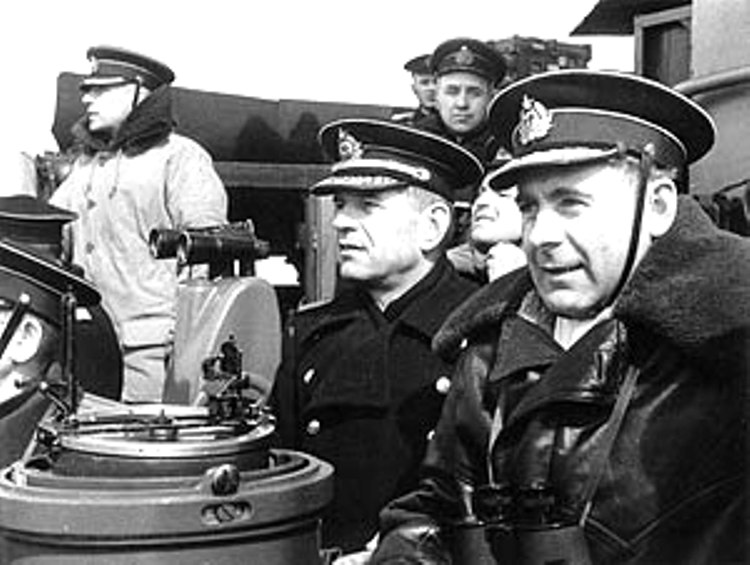 На ходовом мостике эсминца «Грозный» командующий СФ адмирал Арсений Григорьевич Головко (справа) и командир эскадры капитан 1-го ранга Виталий Алексеевич Фокин. 1944 г. : Фокин и Головко.jpg