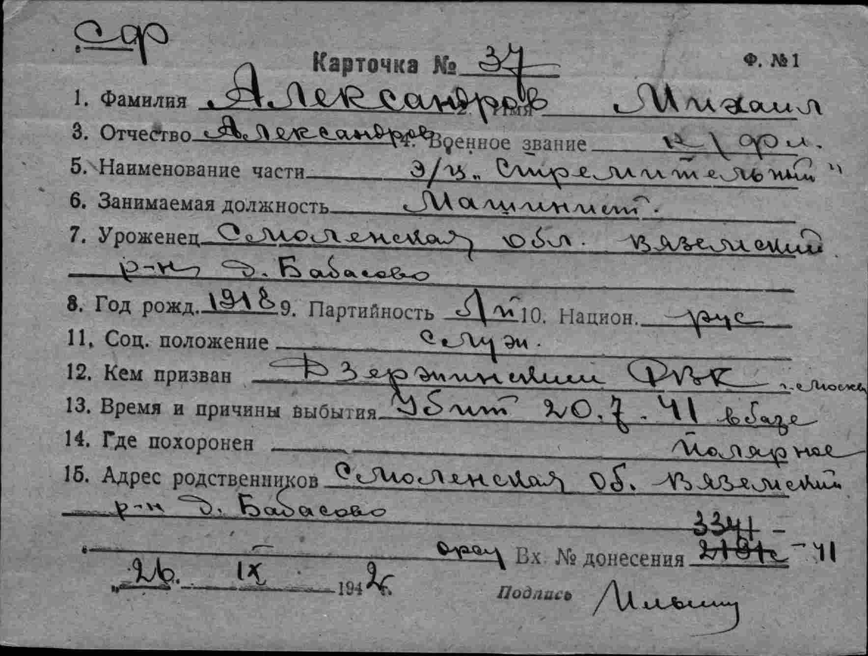 Дата рождения __.__.1907