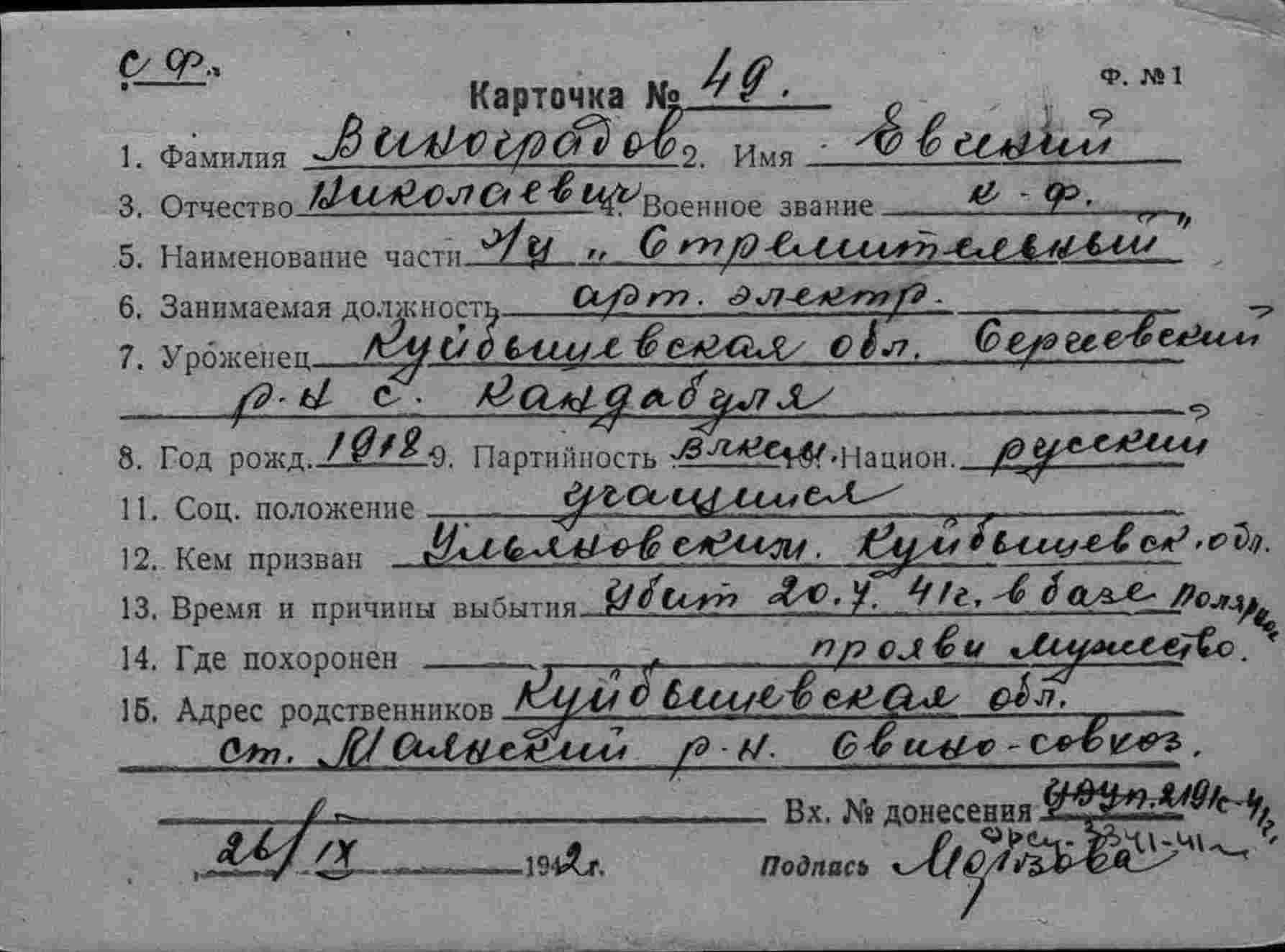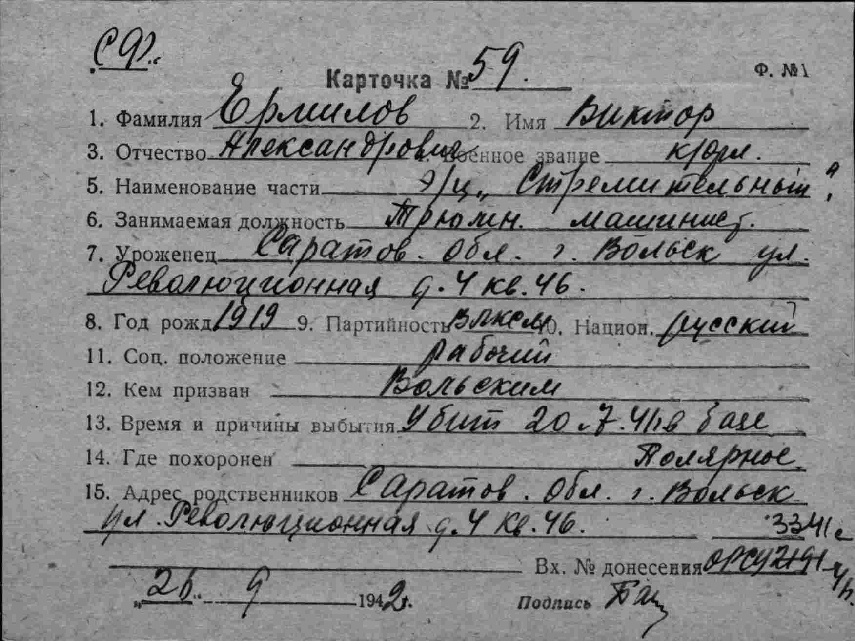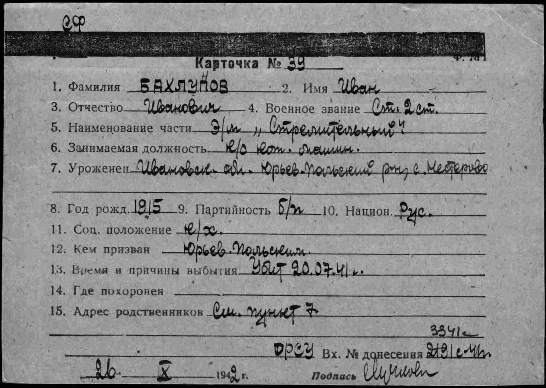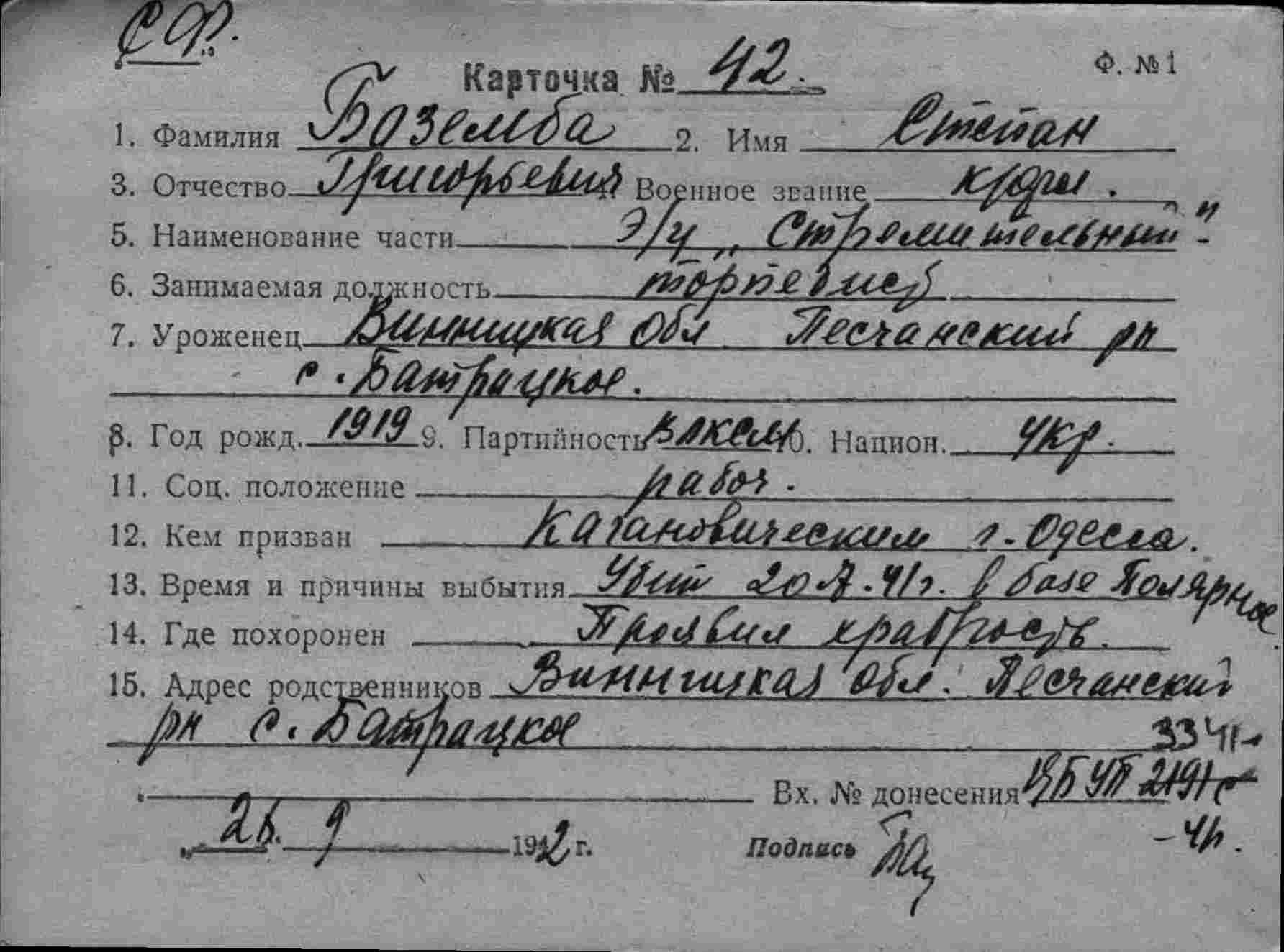 Дата выбытия 20.07.1942