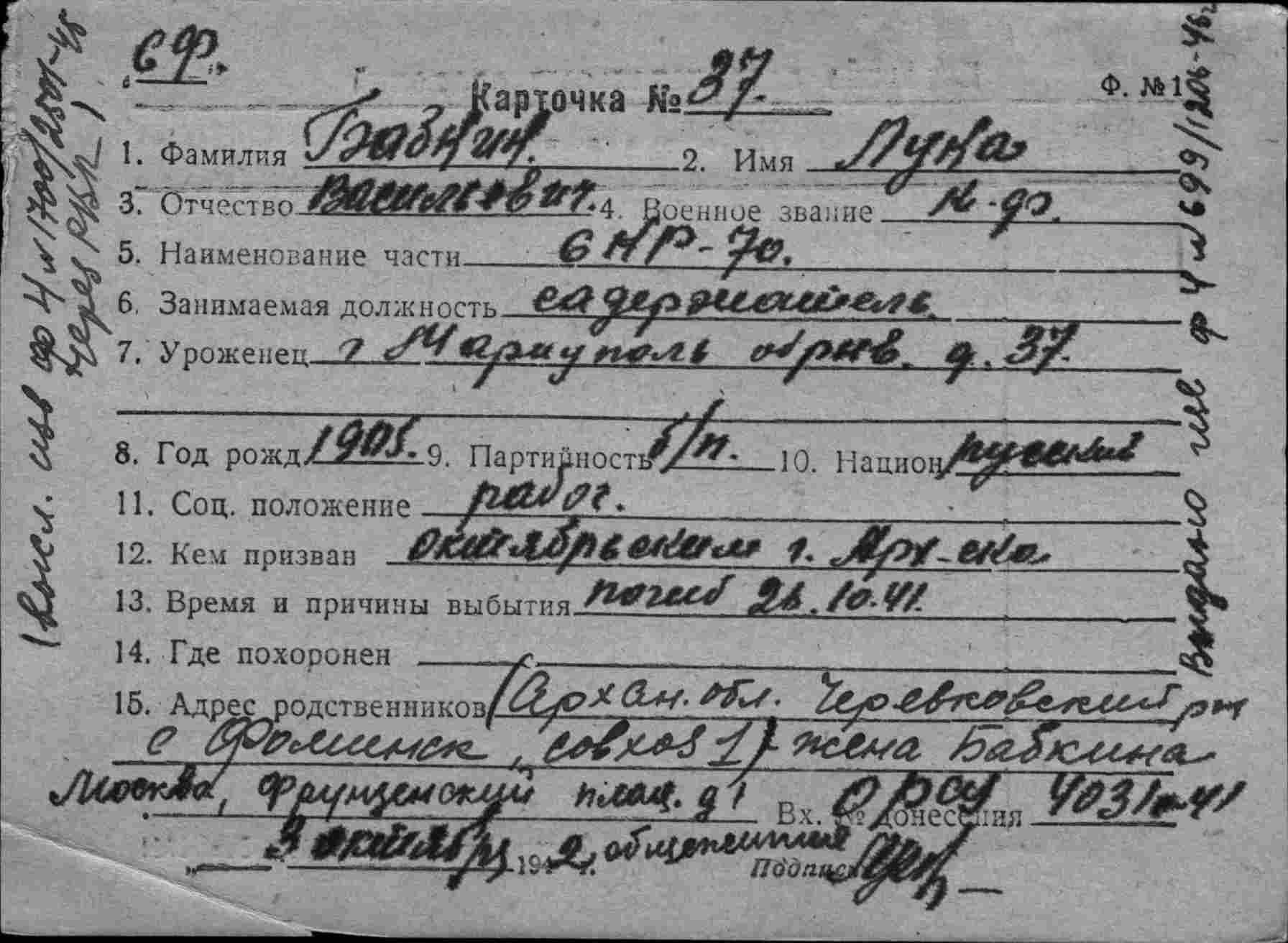 Место рождения Архангельская обл., Приморский р-н, д. Ненокса