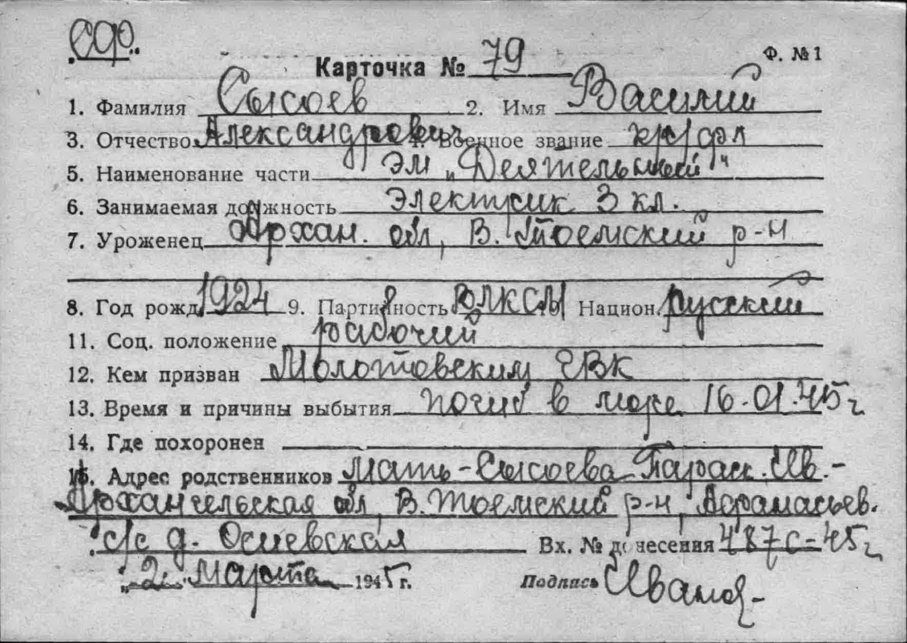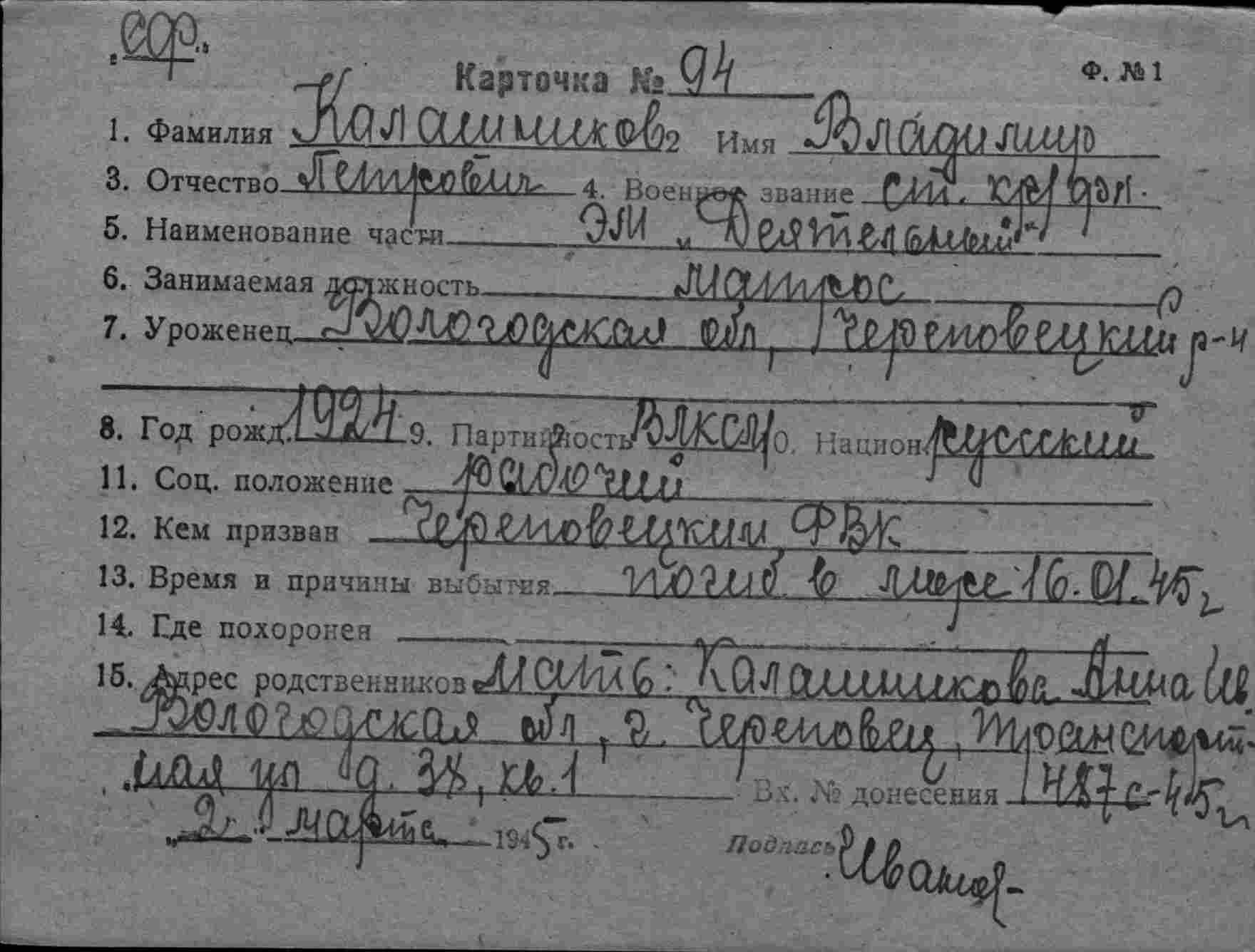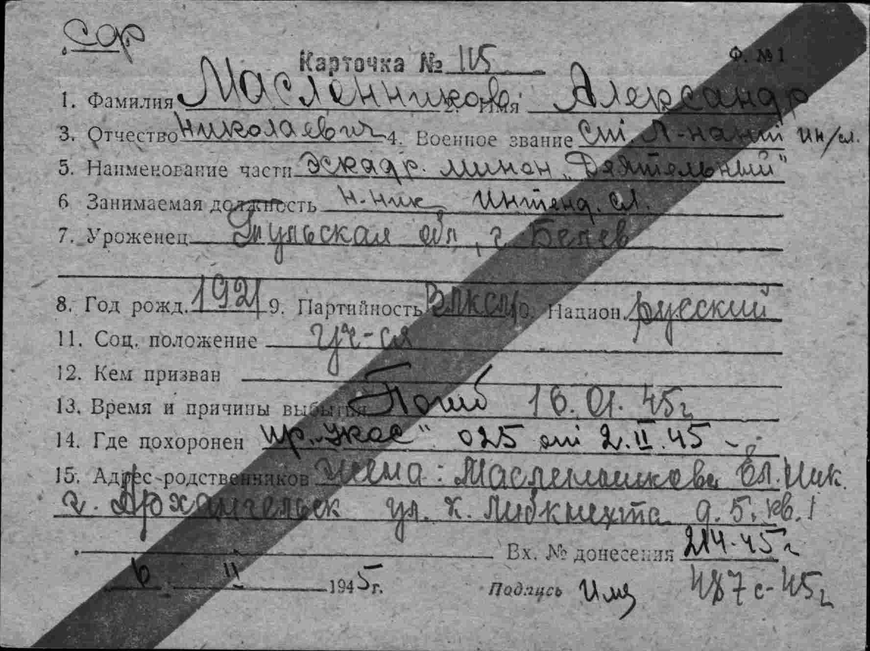 Дата выбытия 16.01.1945