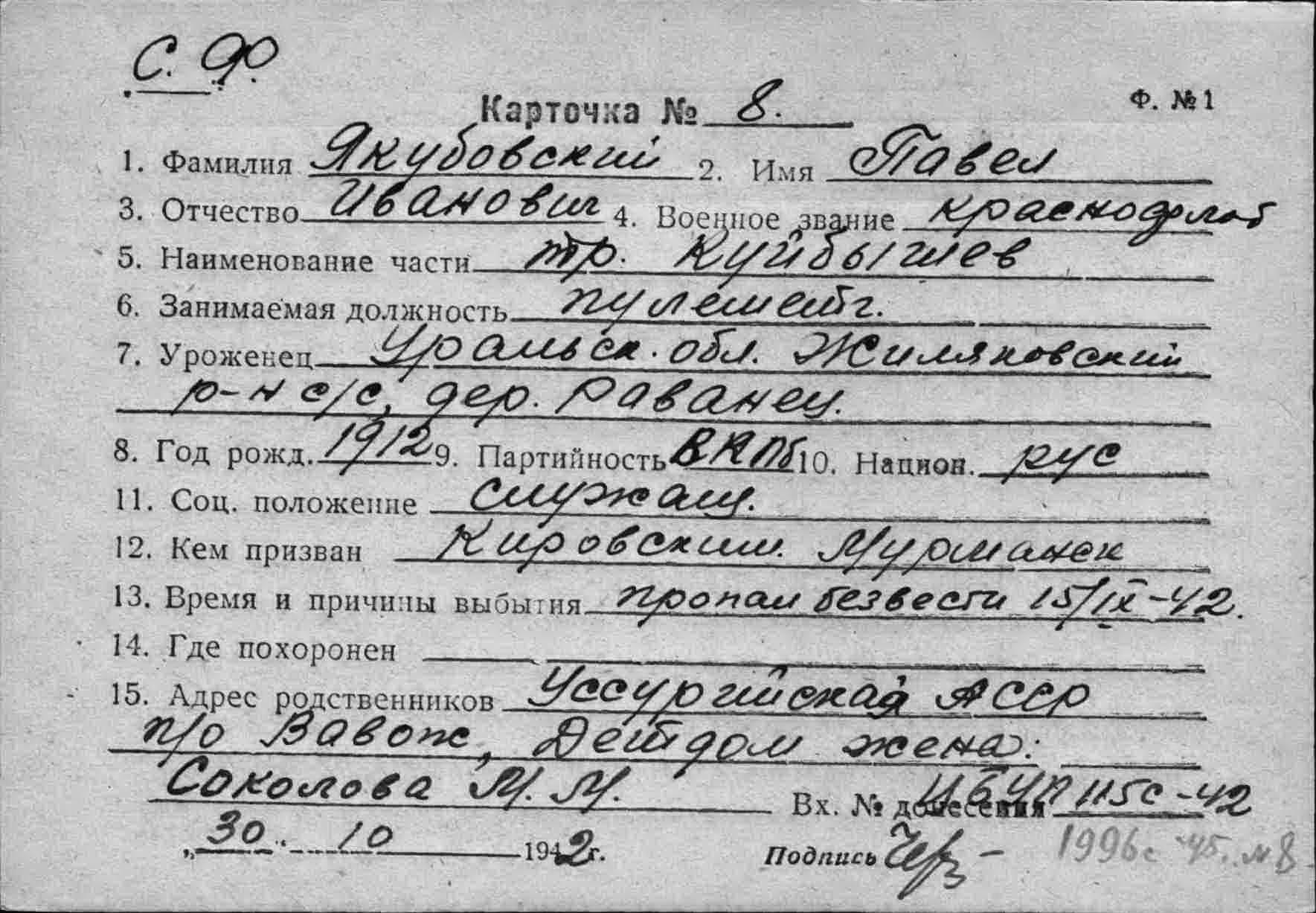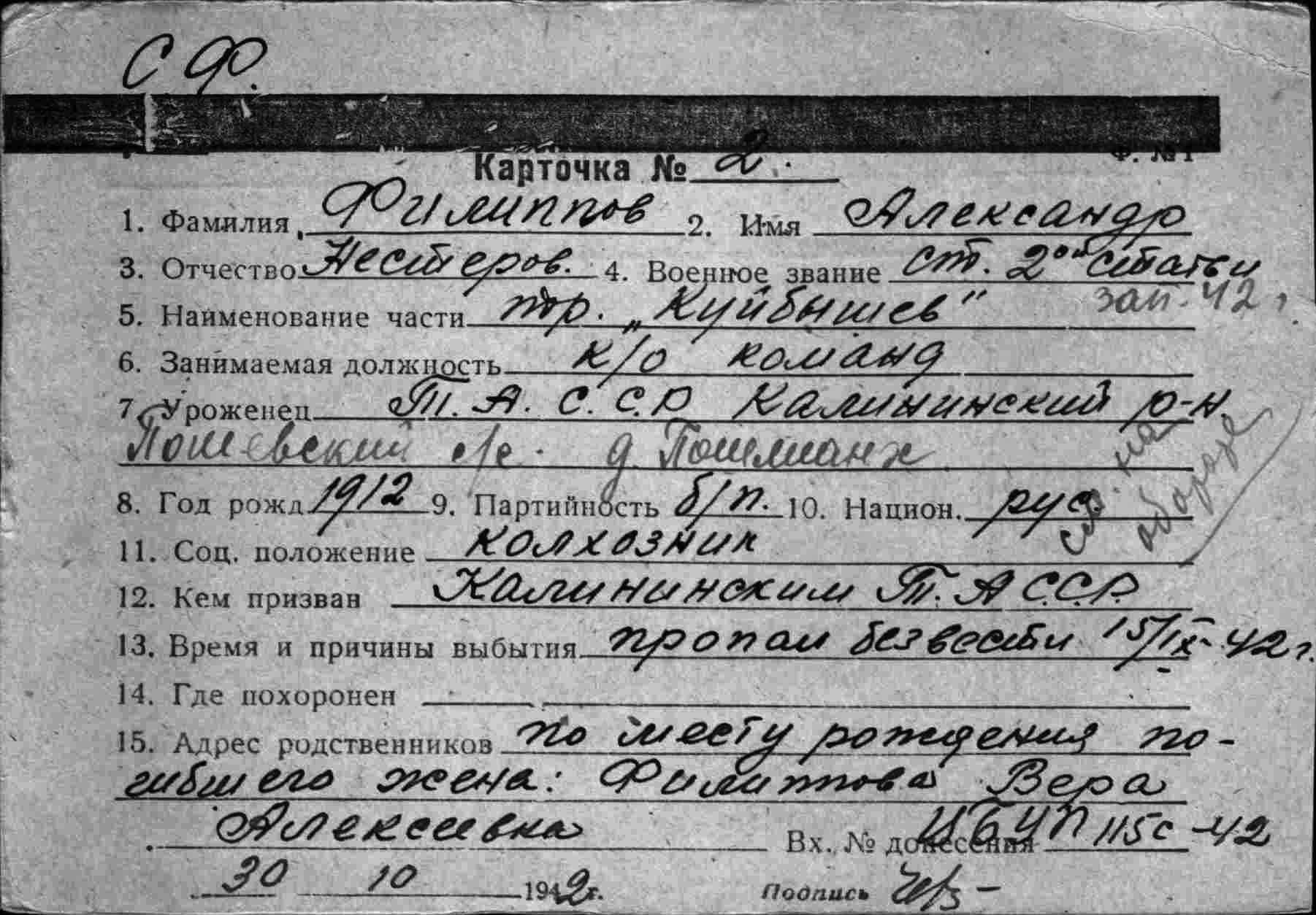 Судьбу парохода "Куйбышев" и его экипажа ( 42 человека ) штабу морских операций Западного района Арктики до конца выяснить так и не удалось. А буксир, погибший вместе с "Куйбышевым" и вовсе не попал в списки потерь. О нем, как это у нас часто бывает, просто забыли.{65}