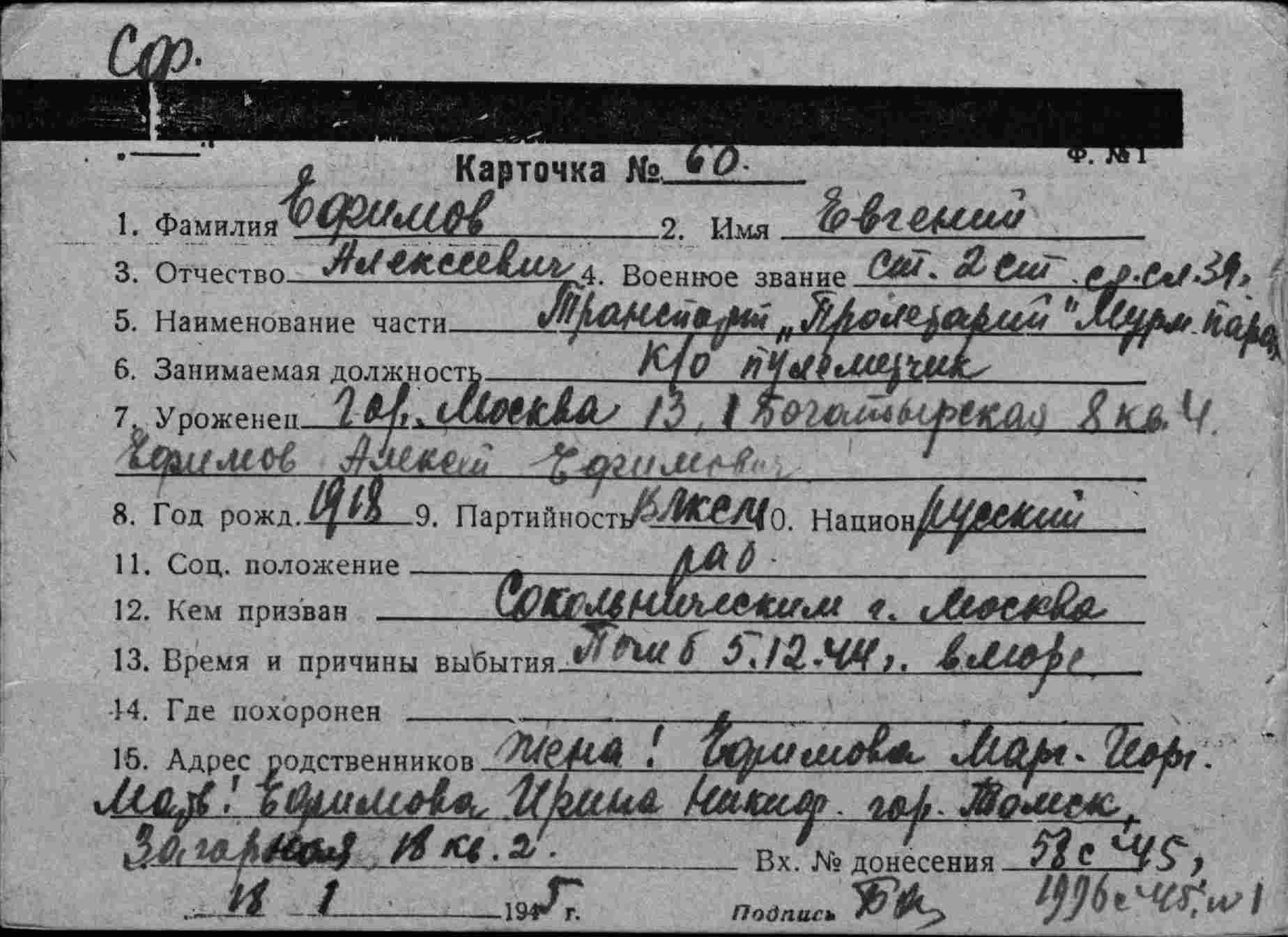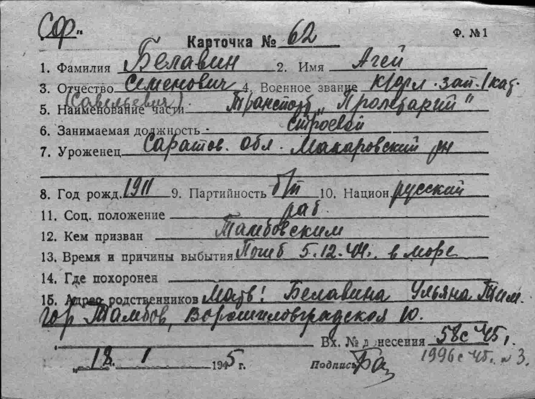 5,Воронцов Сергей Семенович,1907,старший помощник капитана парохода «Пролетарий»