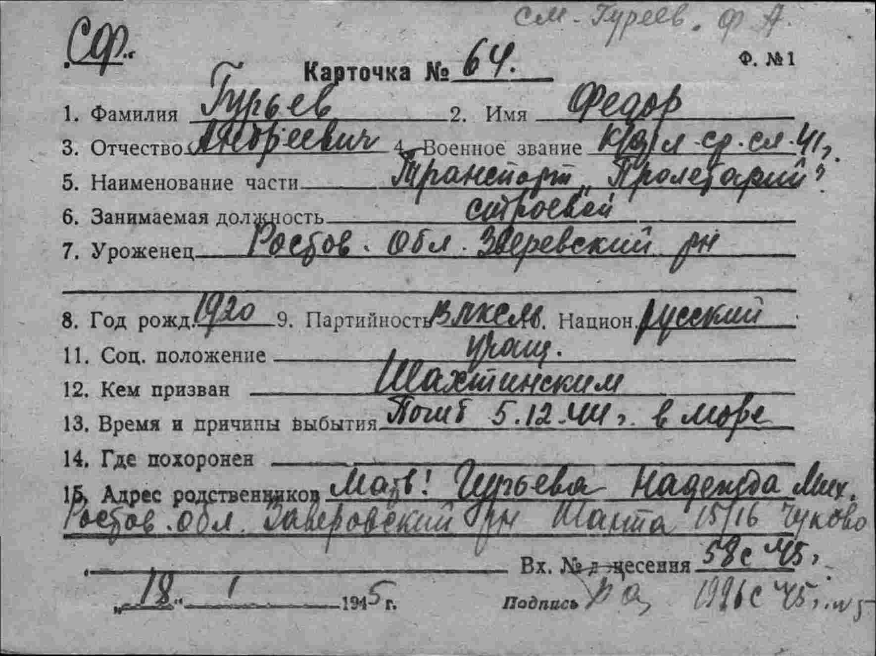 6,Захаров Григорий Дмитриевич,1902,кочегар первого класса парохода «Пролетарий»