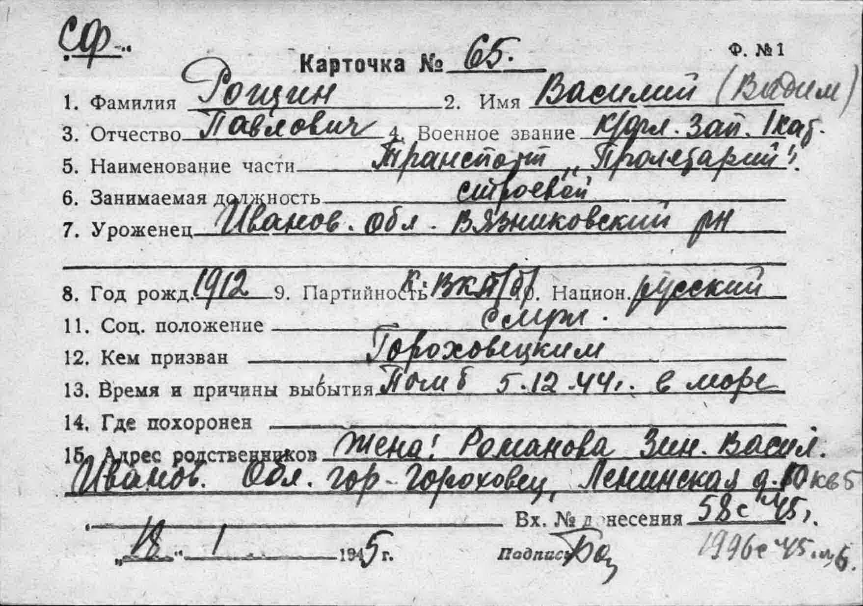 14,Попов Владимир Егорович,1926,матрос первого класса парохода «Пролетарий»