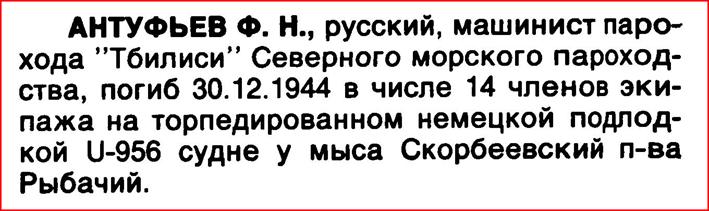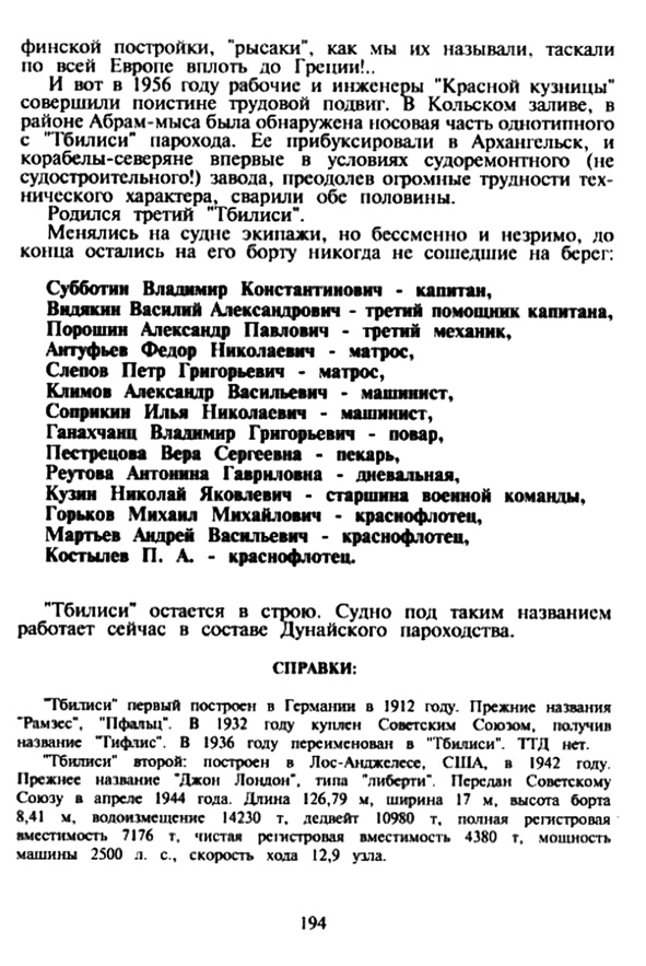 Костылев П. А. - краснофлотец."Тбилиси" остается в строю. Судно под таким названием работает сейчас в составе Дунайского пароходства.