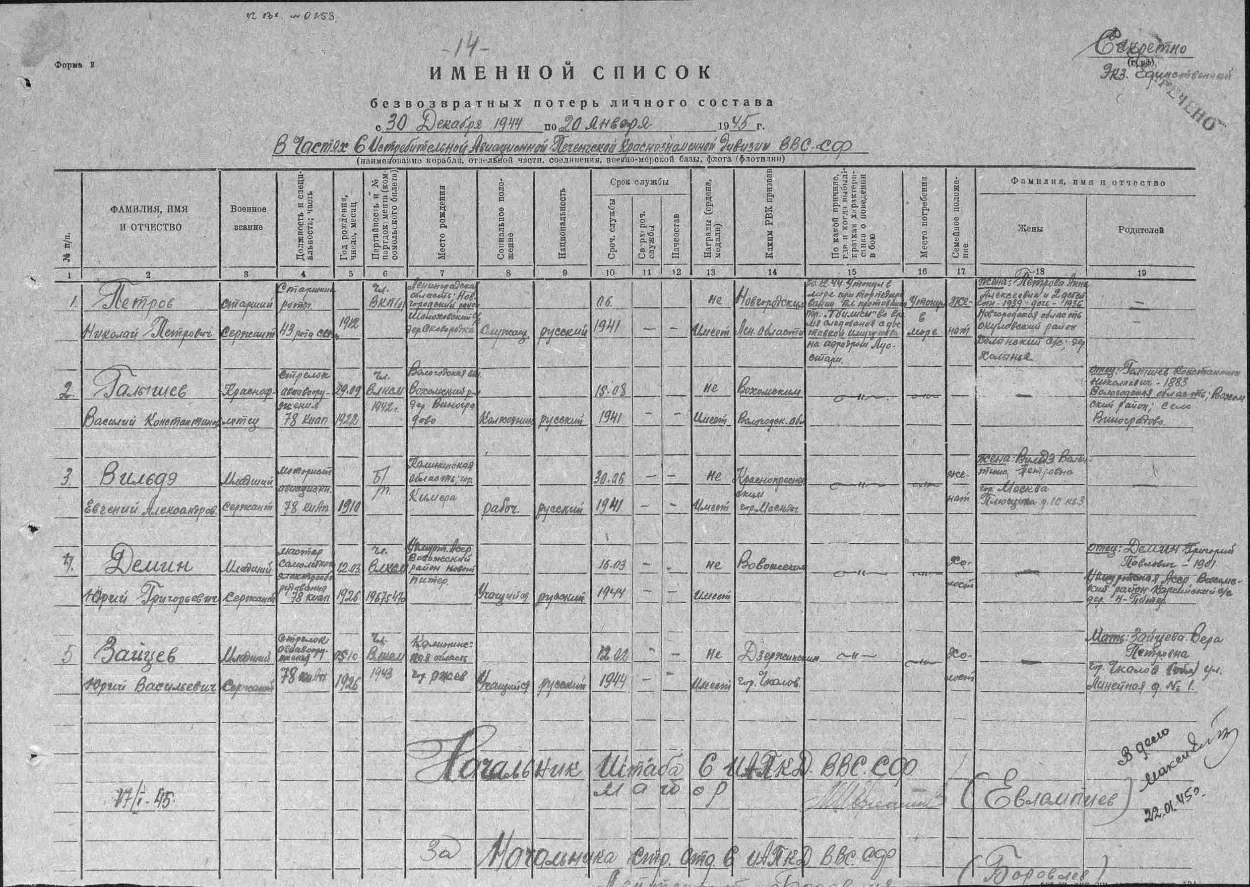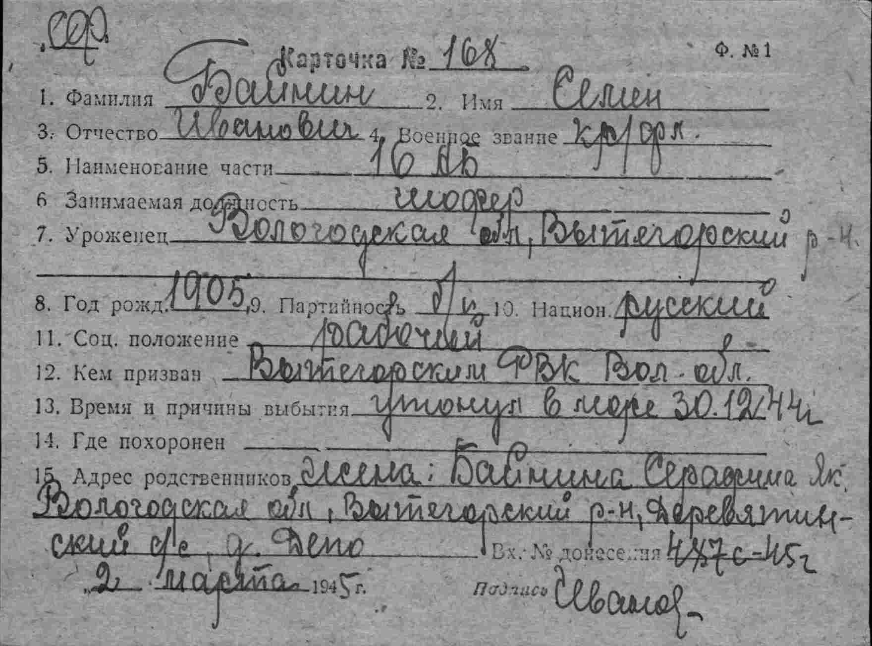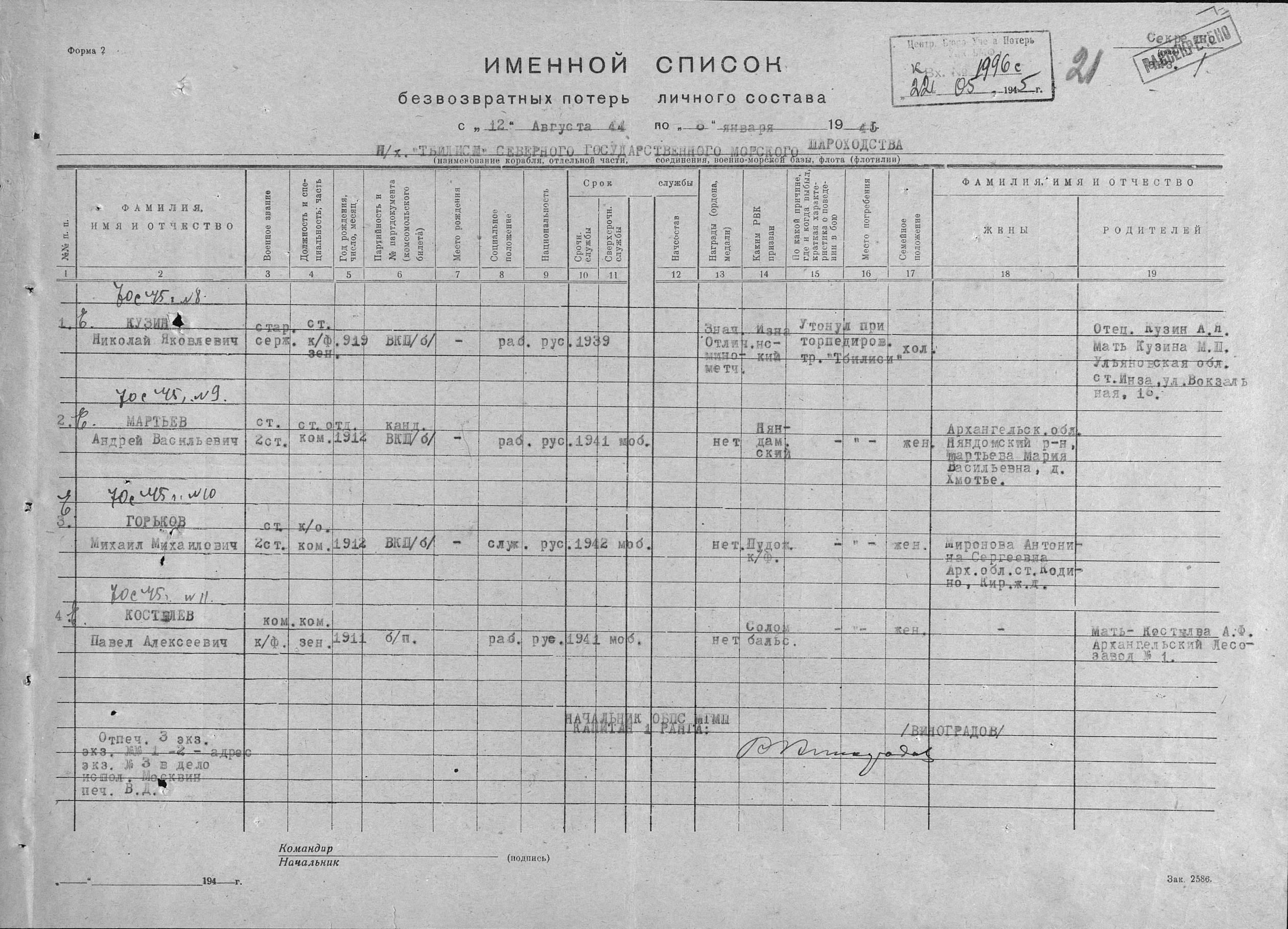 ** Из докладной записки зам. нач. СГМП Я. В. Настусевича наркому МФ П. П. Ширшову. История СГМП 1941 - 1945, т. 2. Архив музея Северного мореплавания.[188]