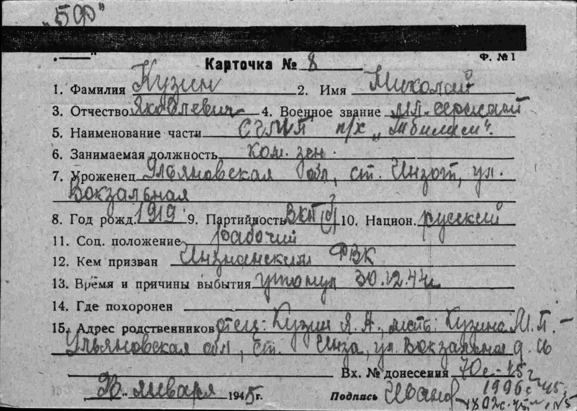 Вх.№0233 23.01.1945 г.