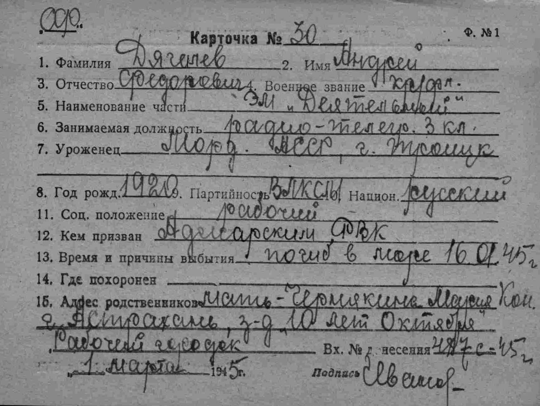 Дягилев Андрей Федорович,кр-фл,радиотелеграфист 3кл.