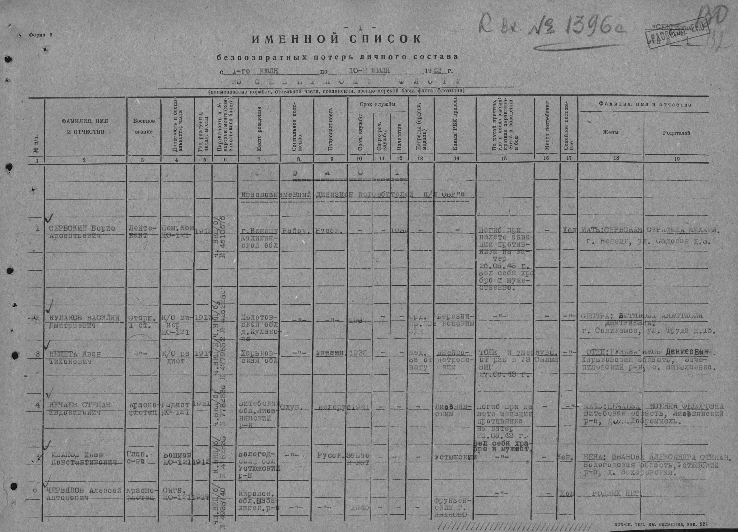 ПЕРЕЧЕНЬ №17. Органов управления, соединений, кораблей, частей и учреждений Северного флота и Беломорской военной флотилии, входивших в состав действующей армии в период Великой Отечественной войны (1941-1945 гг.)