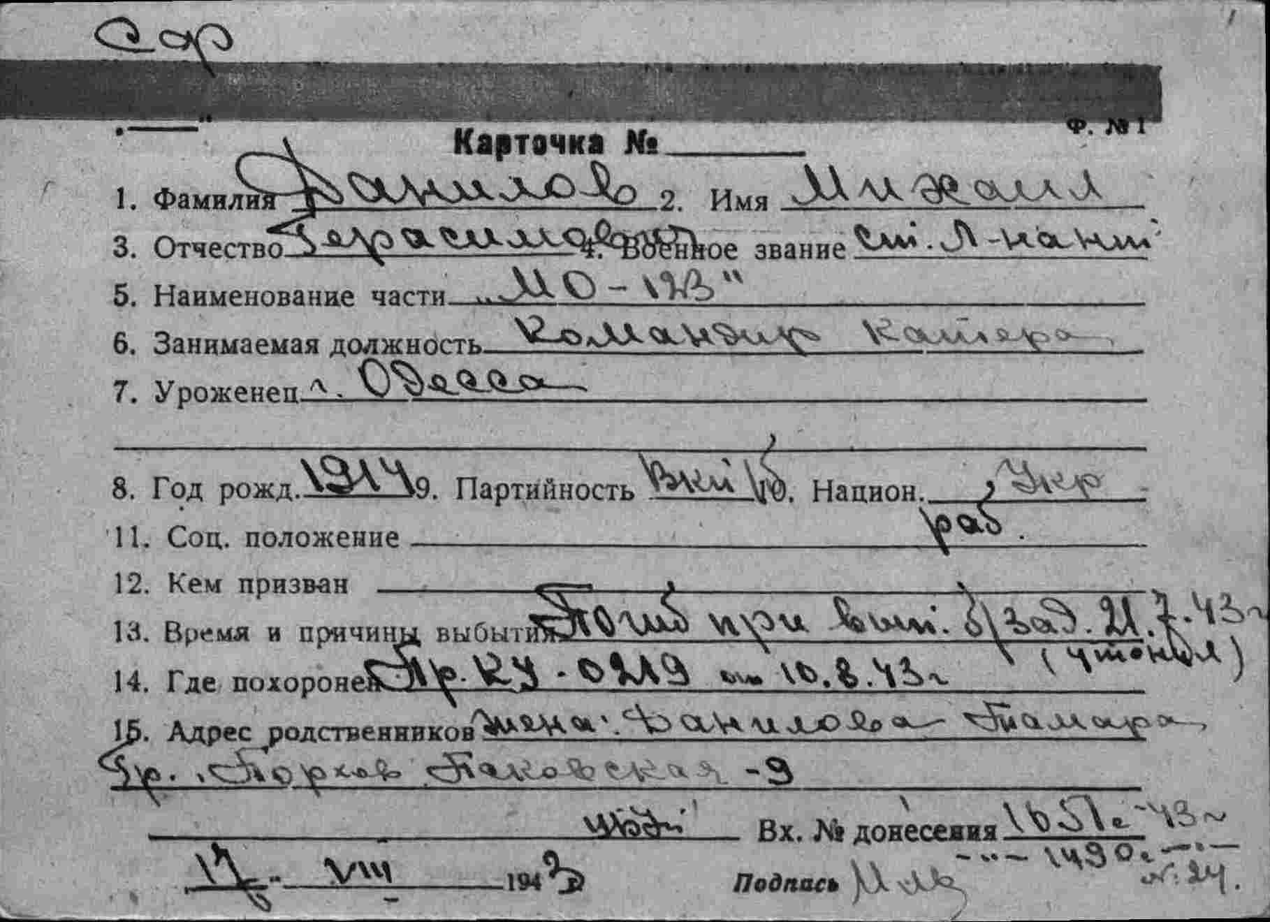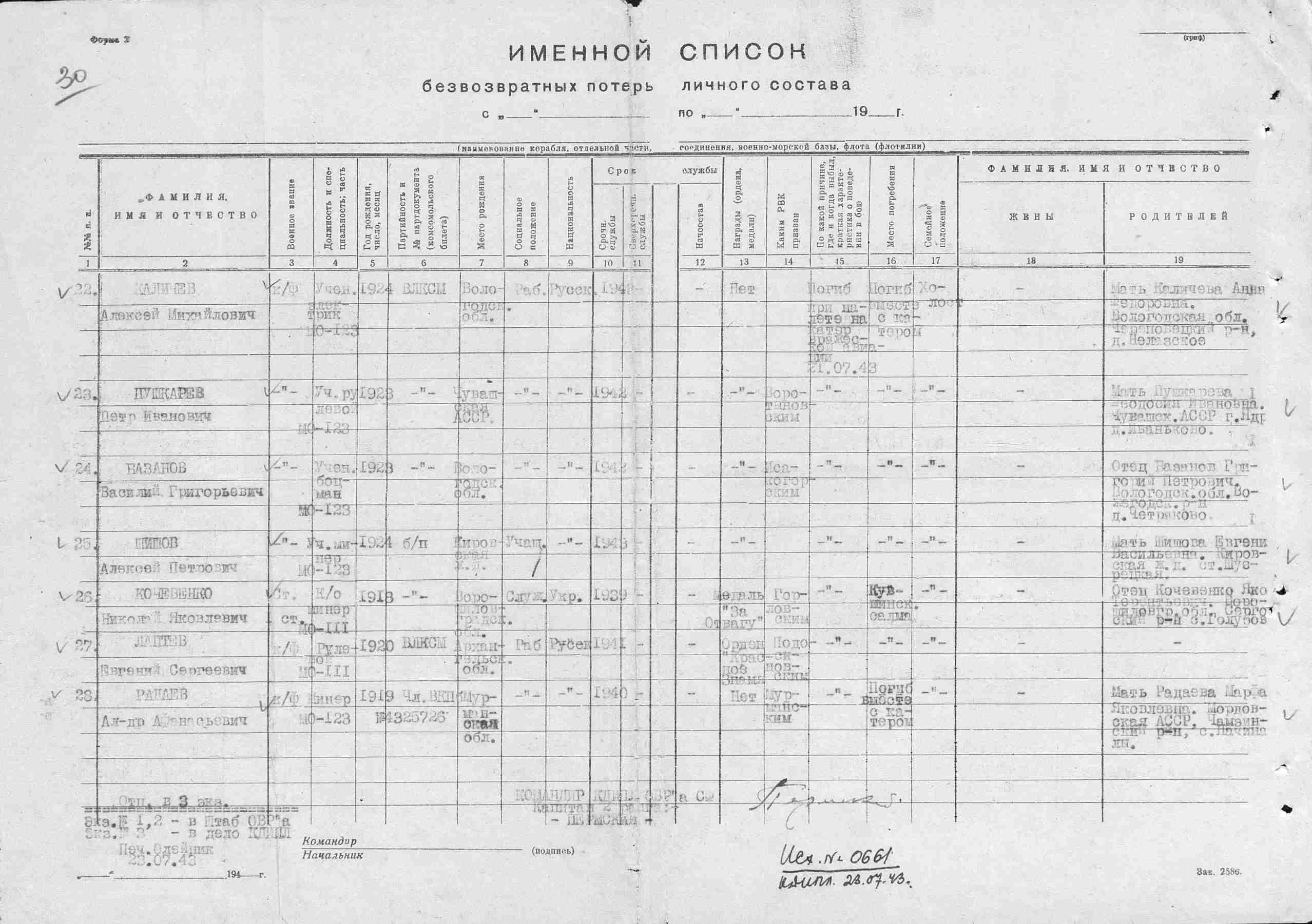 (Правильно МО №123, командир ст.лейтенант Данилов М.Г. МО-124"(б."МО-141") авиация утопит 6.10.1943 - padsee) Чудом удалось спастись только краснофлотцу Панченко. (