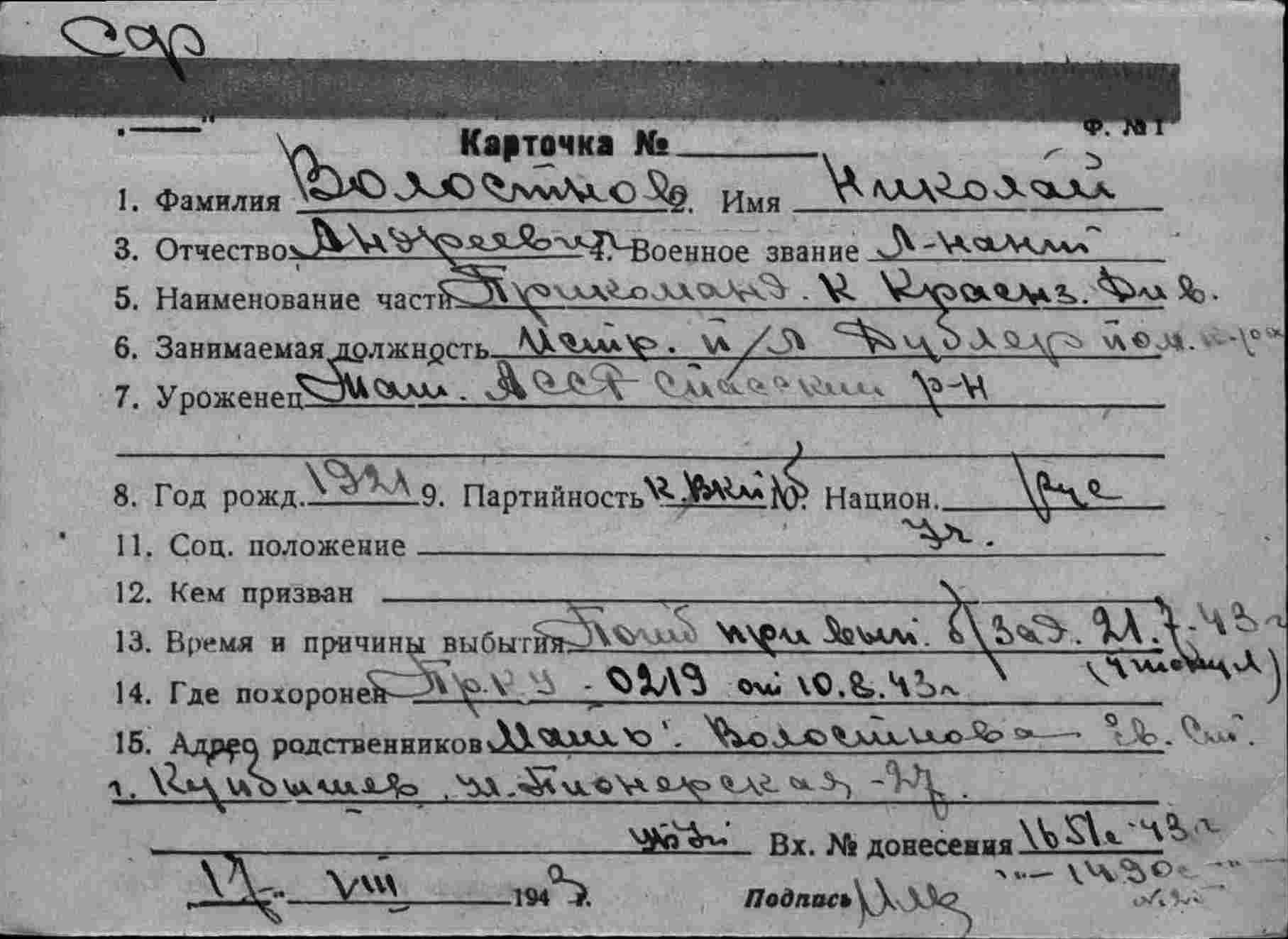 Несчастье происходит обычно там, где его меньше всего ждут. 5 июля 1943 г.