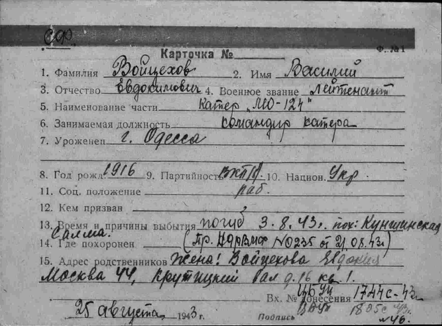 Из главной базы вышли на помощь МО-124 лейтенанта В. Е. Войцехова и МО-133 старшего лейтенанта П. Т. Явона; в пути их атаковали два «фокке-вульфа» — катер Войцехова получил от крупного осколка бомбы большую пробоину и стал тонуть. Пострадал и МО-133, четверо в его [258] команде были убиты, семеро ранены, в том числе и командир катера. Командование принял на себя его помощник старший лейтенант Л. Г. Чепелкин. Корпус МО-133 был пробит осколками в 40 местах. Войцехов и его команда старались спасти катер (лейтенант В. Е. Войцехов был убит-padsee); им удалось завести на пробоину пластырь и прекратить поступление воды в корпус. Чепелкин взял катер Войцехова на буксир и отвел в Порт-Владимир, где уже находился мотобот ПМБ-108 со снятой с мотобота ПМБ-86 командой.