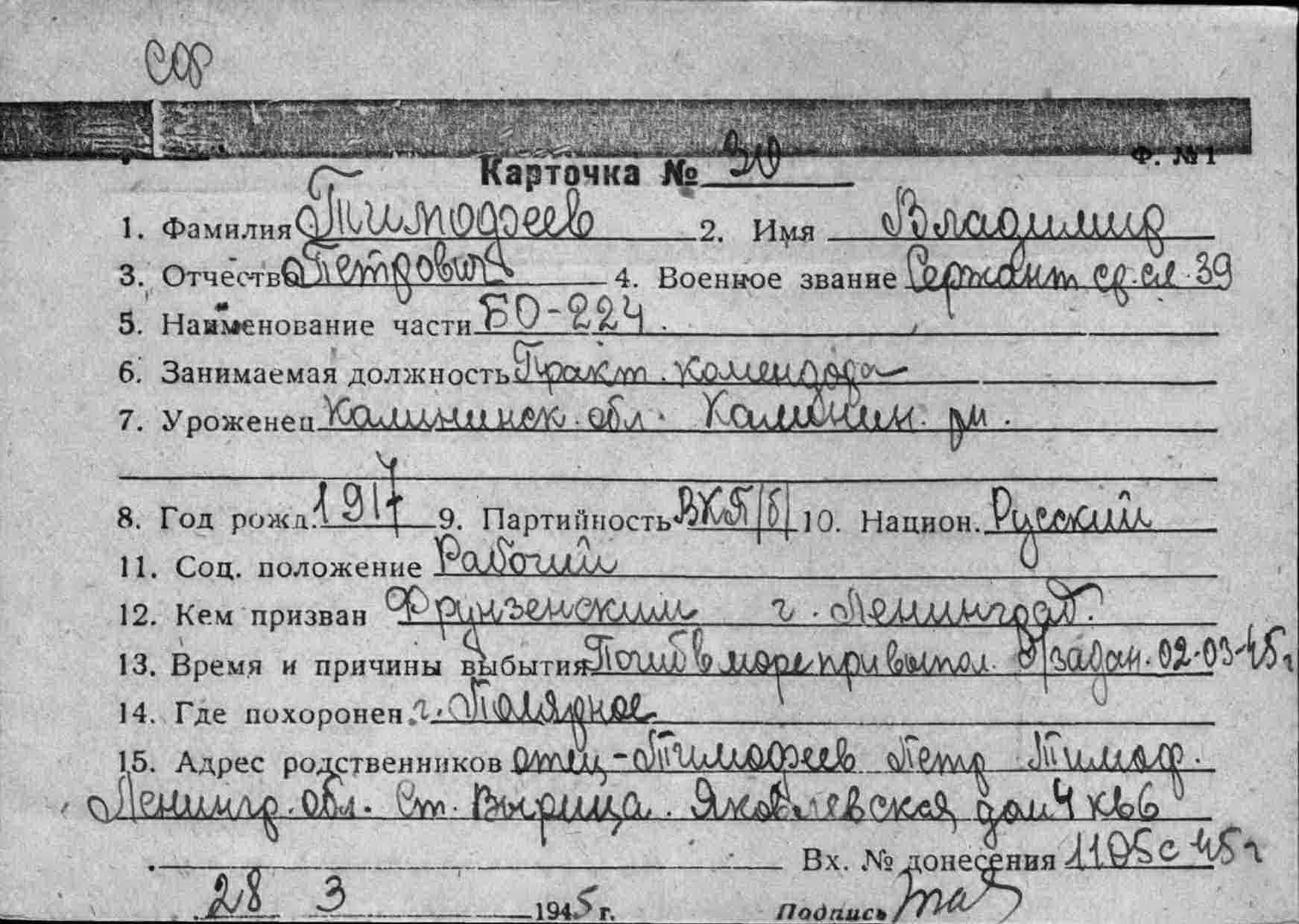 Тимофеев Владимир Петрович,сержант,практ.комендора