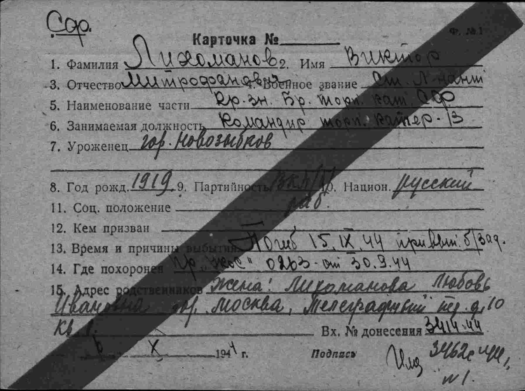 Радость очередной победы — четыре потопленных транспорта — успех немалый! — омрачалась гибелью старшего лейтенанта В. М. Лихоманова и его подчиненных.