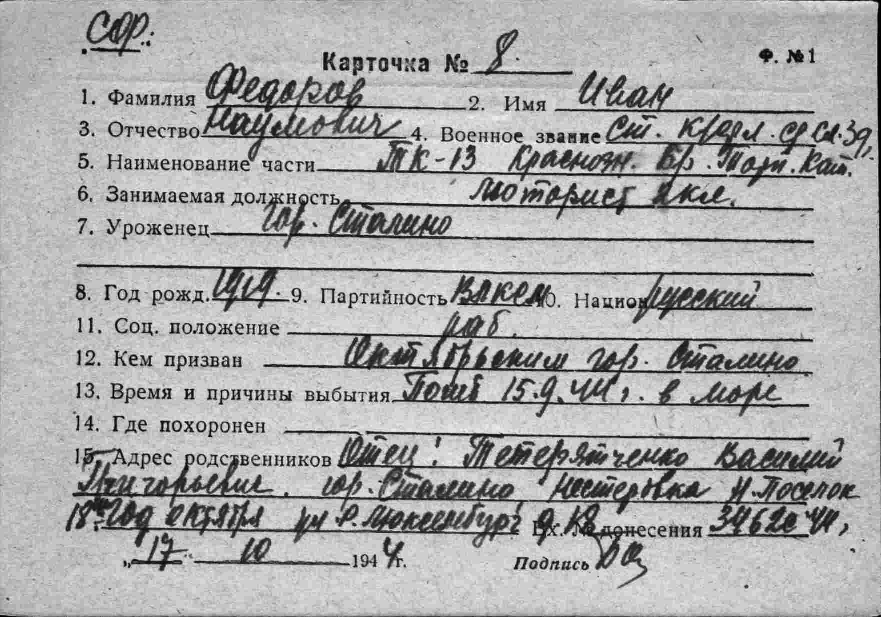 Множество документов хранится в различных архивах. Может, кто и хотел бы создать монументальный труд в память мальчишек, навеки оставшихся в морских водах или под пирамидками с жестяной звездочкой. Но архивы сейчас работают только на коммерческой основе…