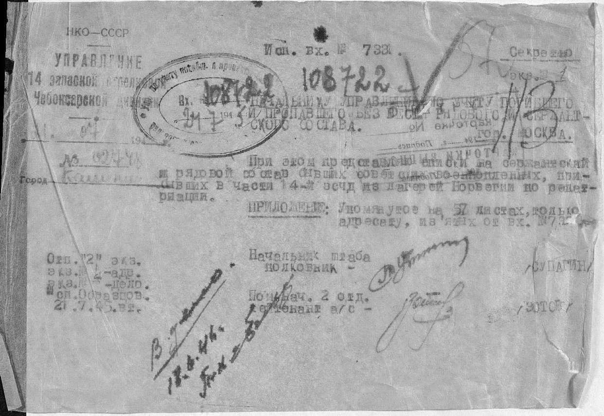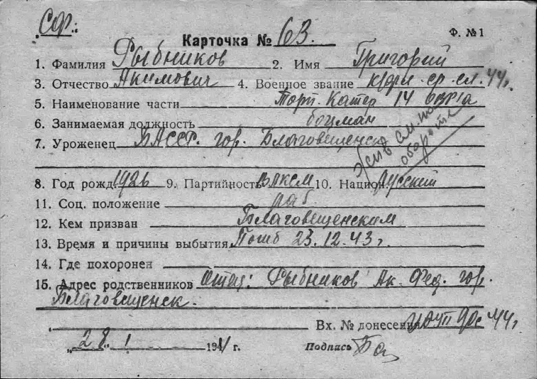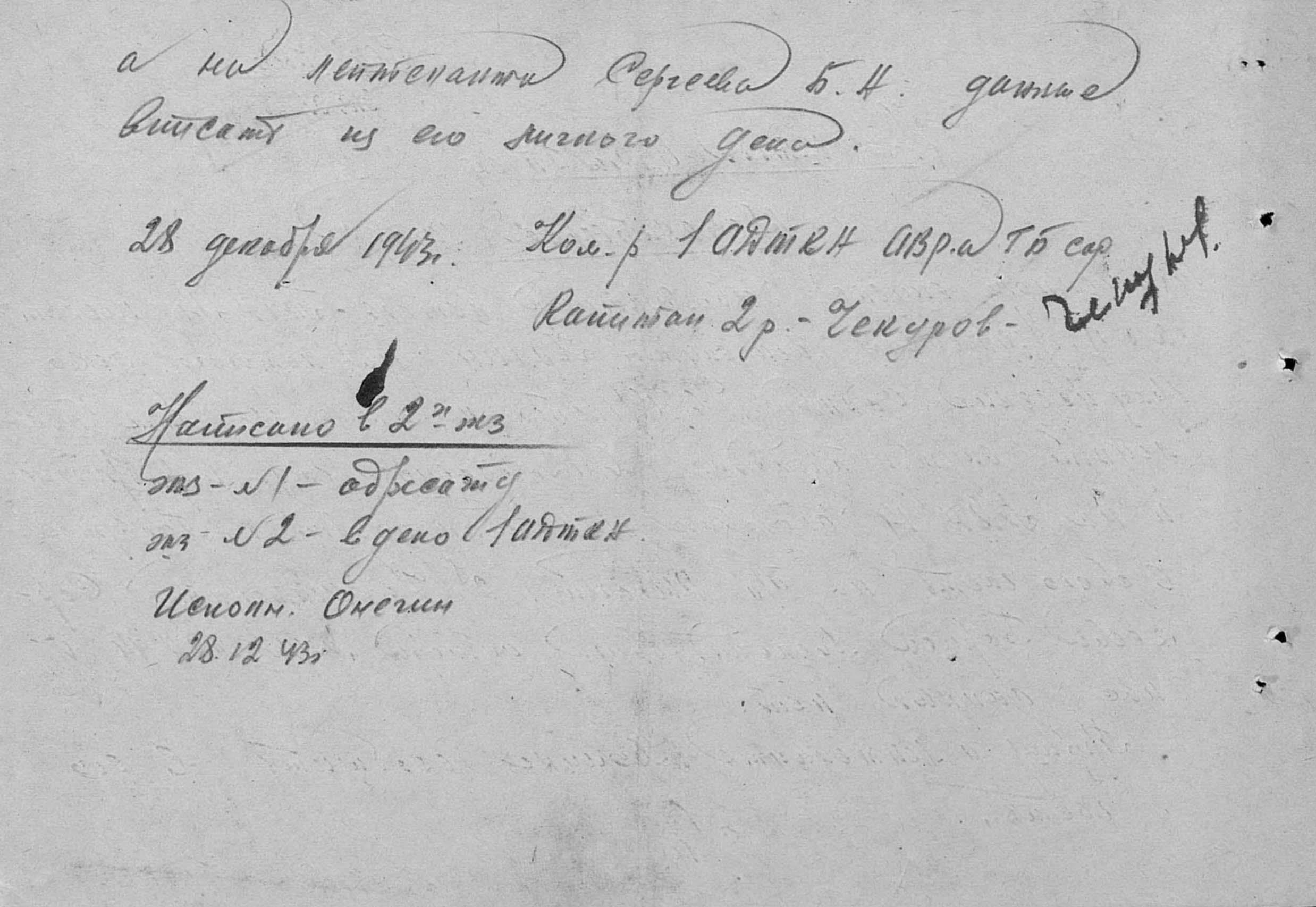 Полевая почта 36044 28 декабря 1943 г. № 02