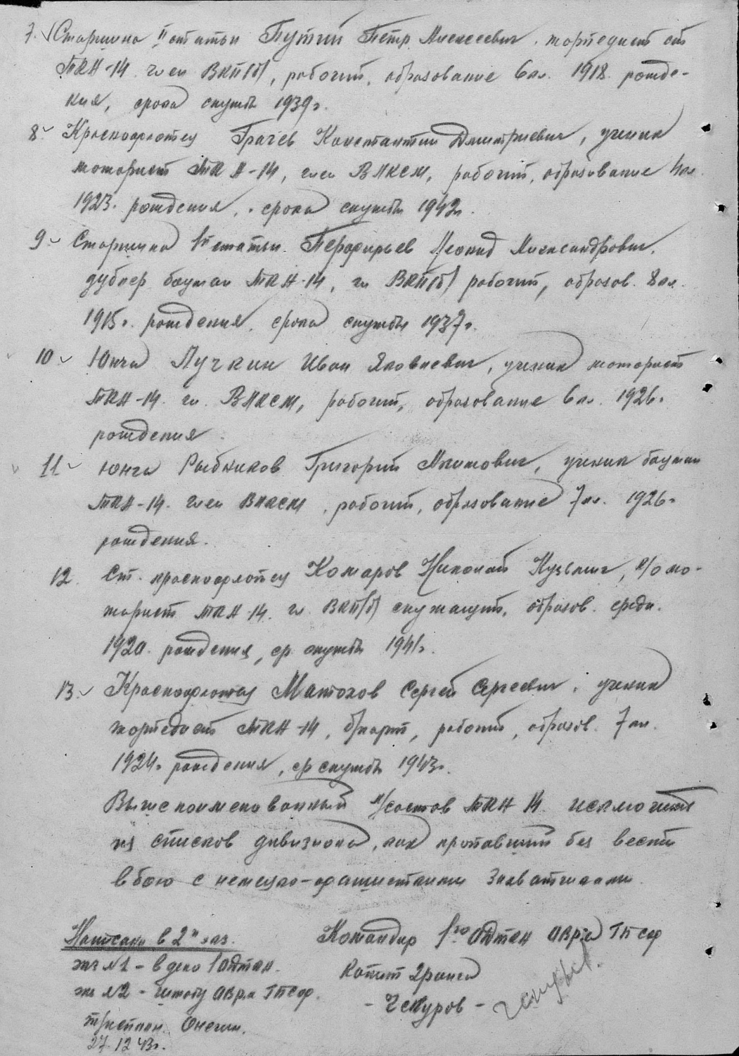 2).на лейтенанта Сергеева Бориса Александровича дублера к-ра ТКА-14 у нас данных нет.