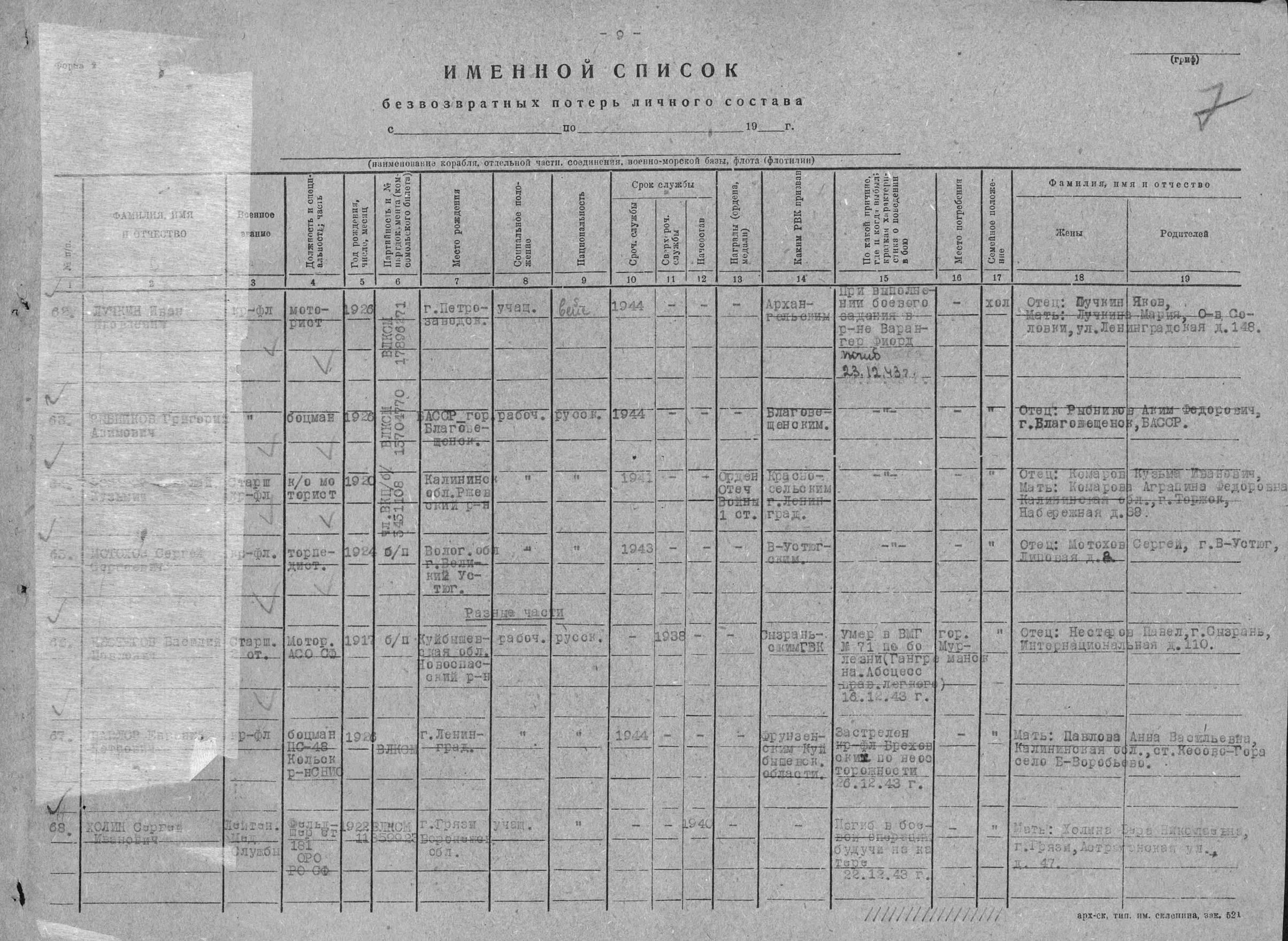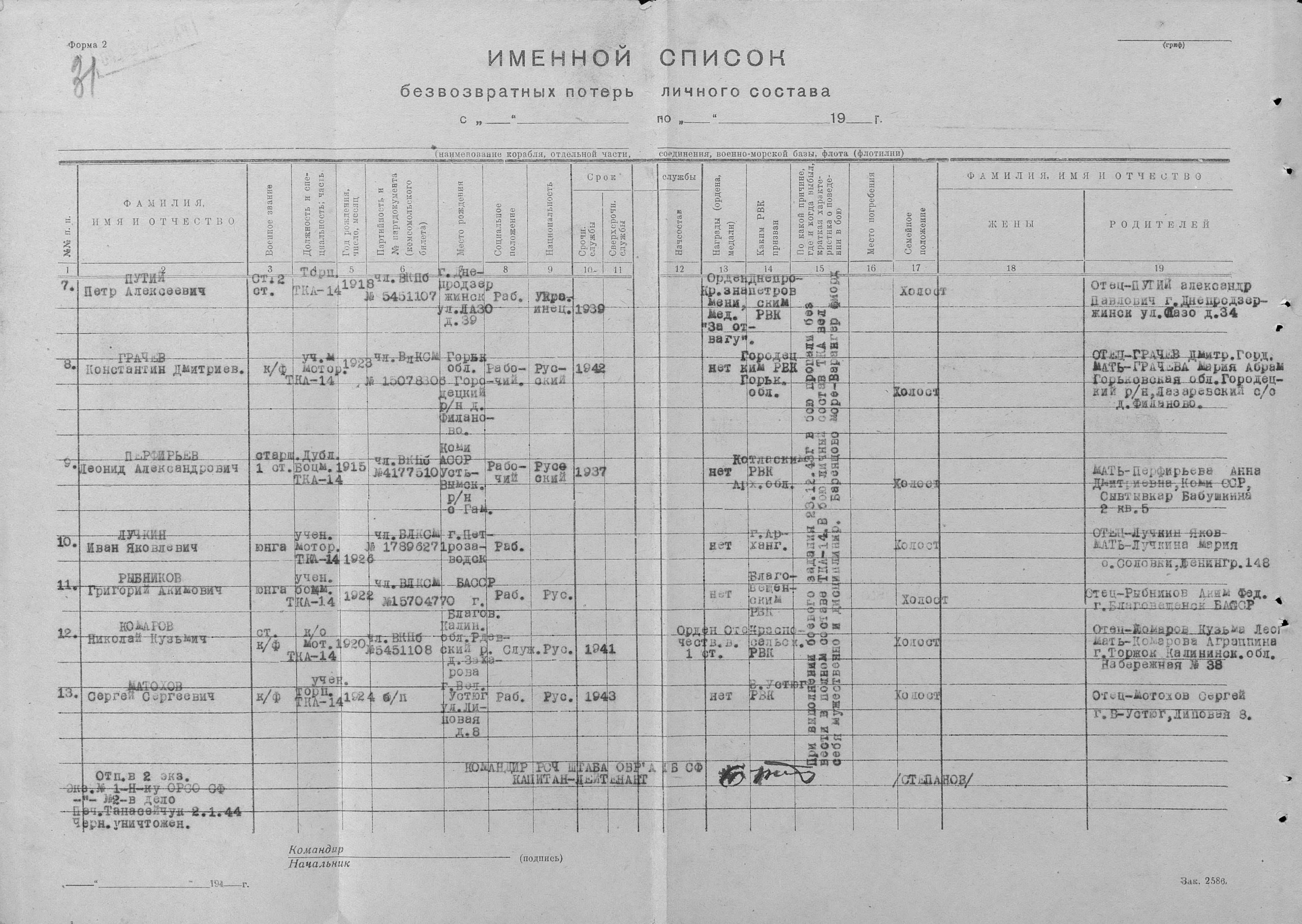 В именном списке безвозвратных потерь-ТКА-14 числятся: