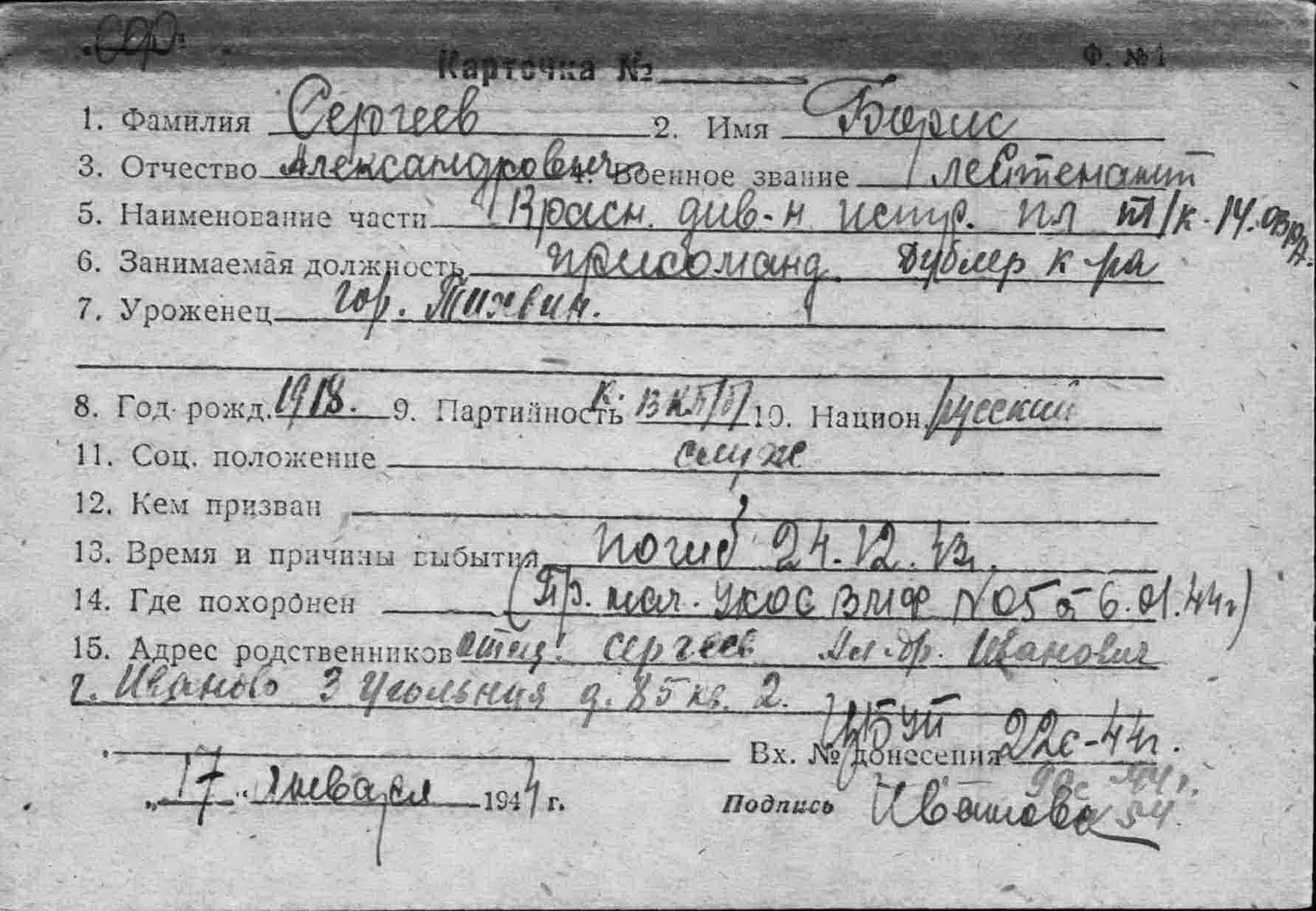 а на лейтенанта Сергеева Б.А. данные вписать из его личного дела.