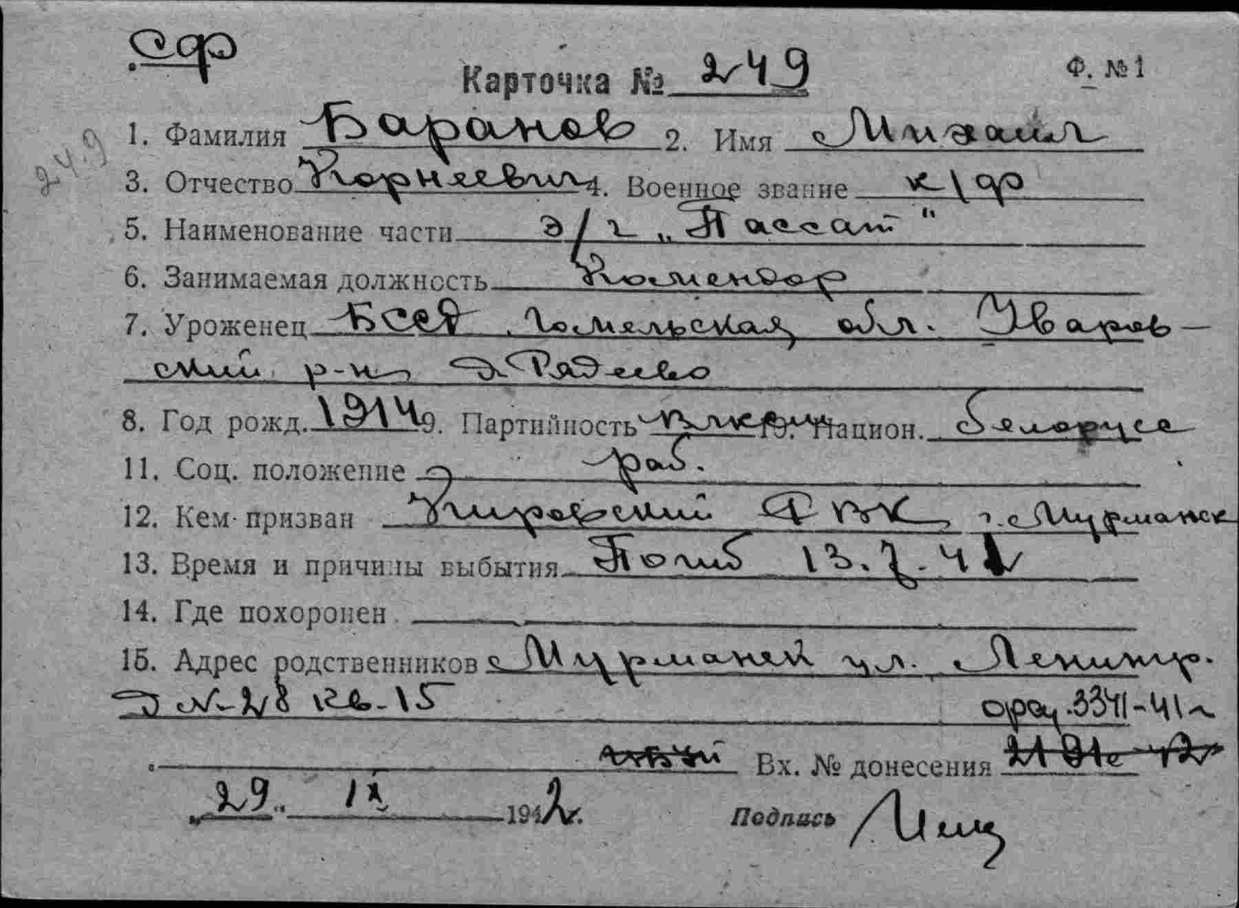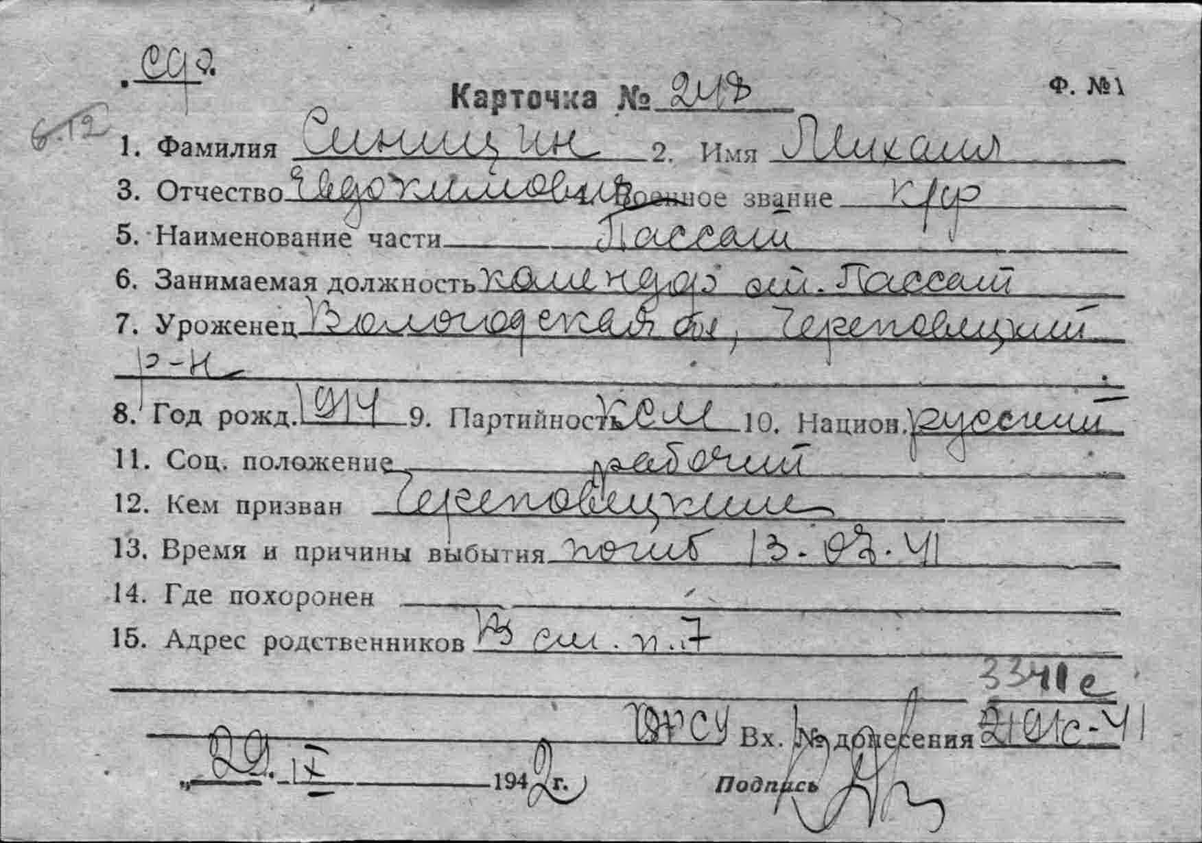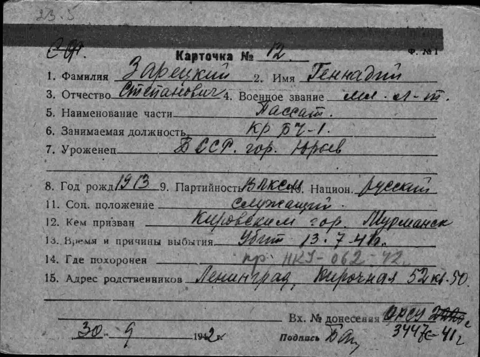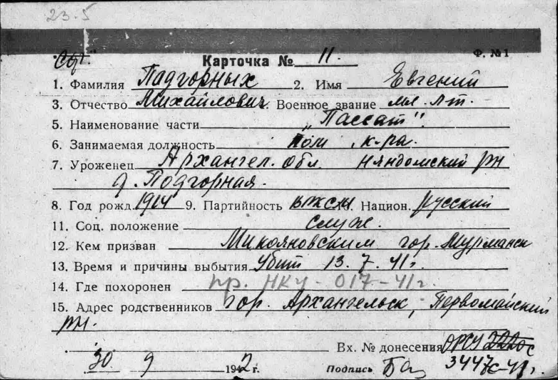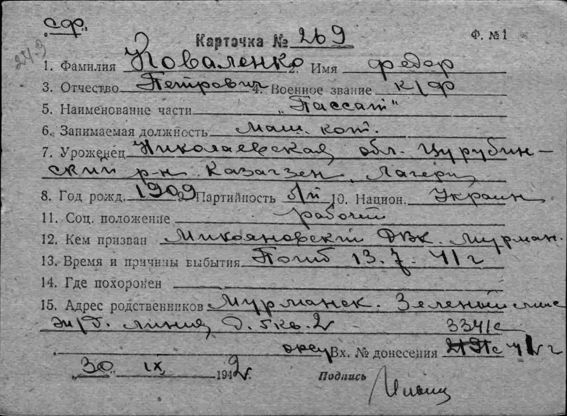 Примечание: надпись "с карт.№90 - различны" относится к однофамильцу (родственнику?) Немчанинову И.С. погибшему 20.07.1941 г. на ЭМ "Стремительный" , см.тему: http://www.polarpost.ru/forum/viewtopic ... 978#p36978