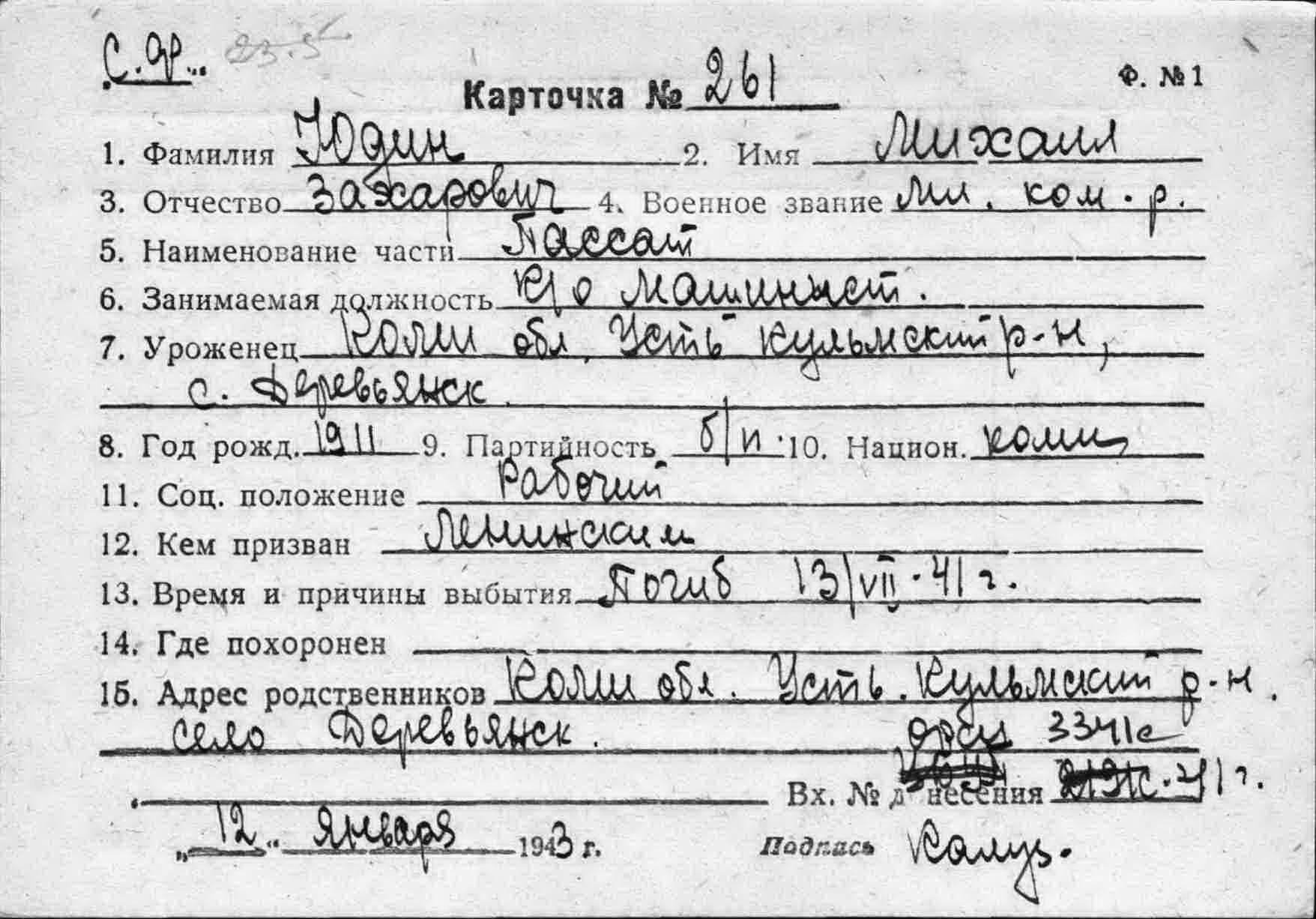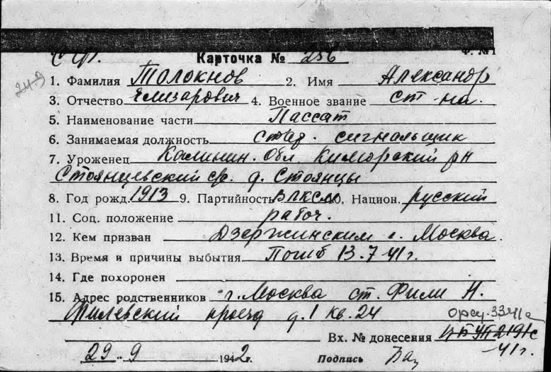 Дата рождения __.__.1909