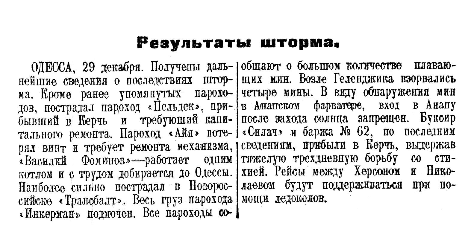 Сильно штормило в Черном море в декабре 1924 года. "Трансбалт" пострадал на 60.000 тыс рублей.