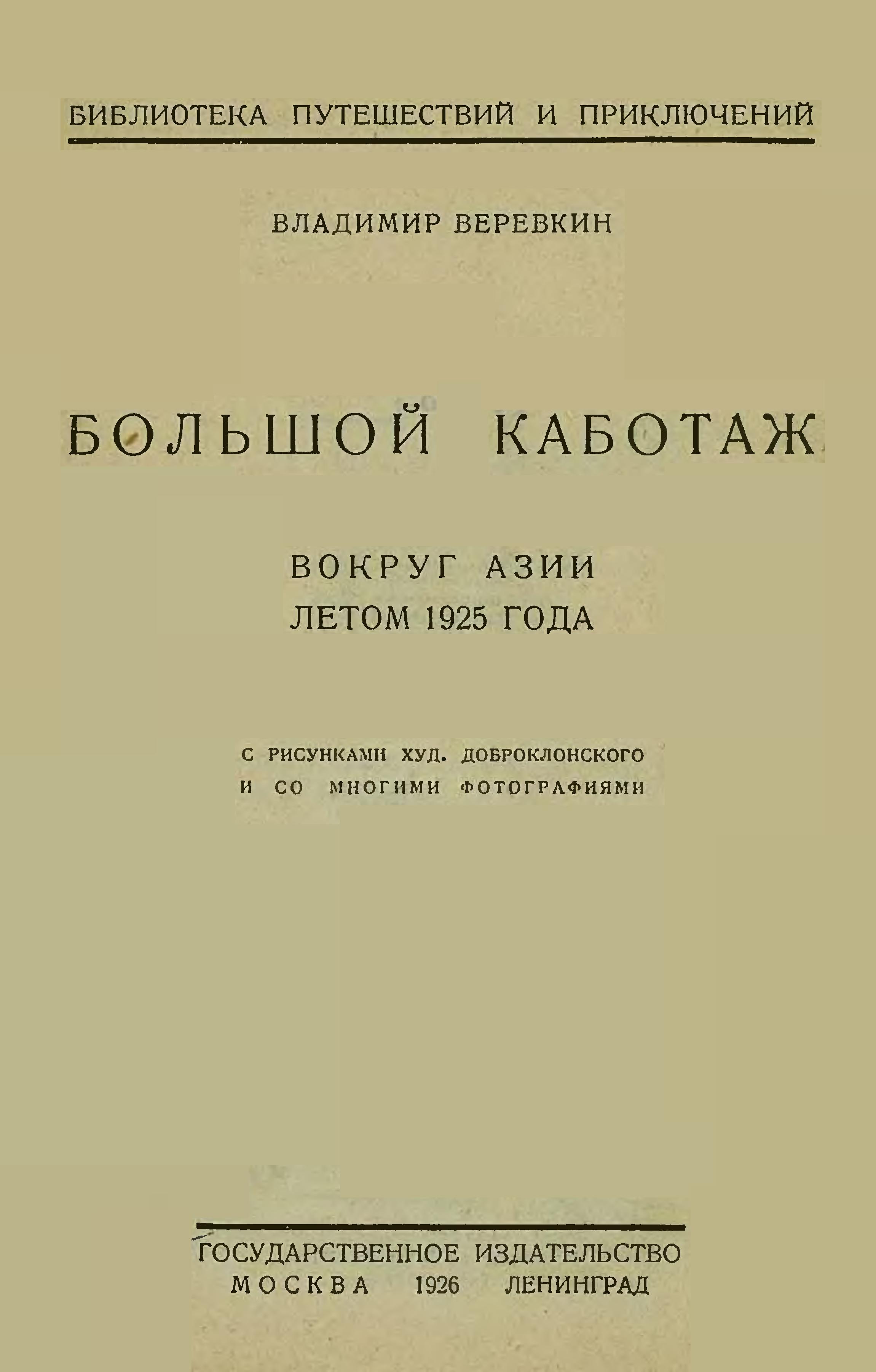 «Большой каботаж» — записки пассажира о рейсе вокруг Азии (Одесса-Владивосток) летом 1925 г. на 20.000-тонном пароходе «Трансбалт».