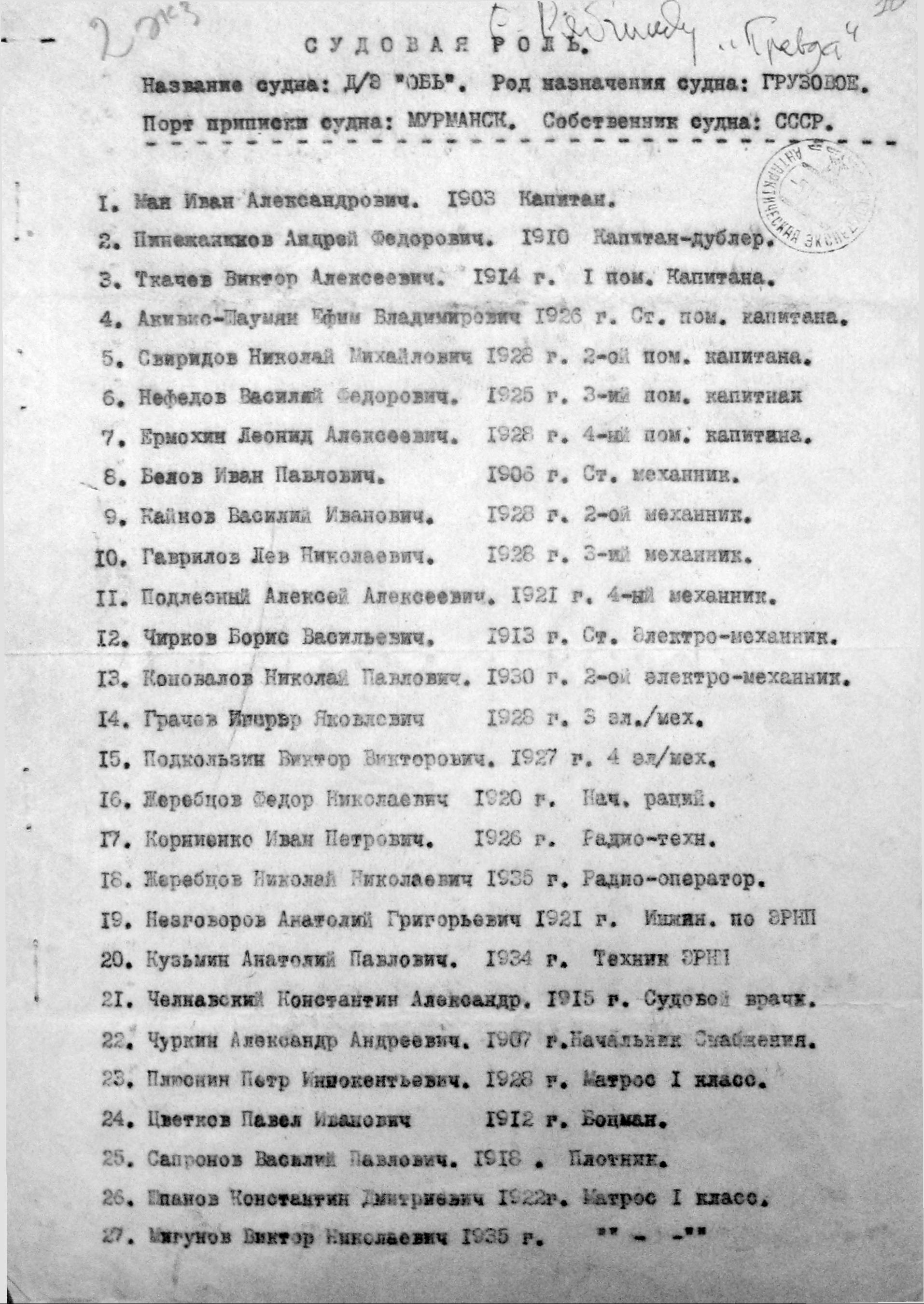 Обь. В.Н.Мякинкин, А.А.Каш, А.И.Зайцев, К.М.Якубов, А.М.Поликарпов, В.К.Бабарыкин, М.М.Кириллов, Г.М.Лукин