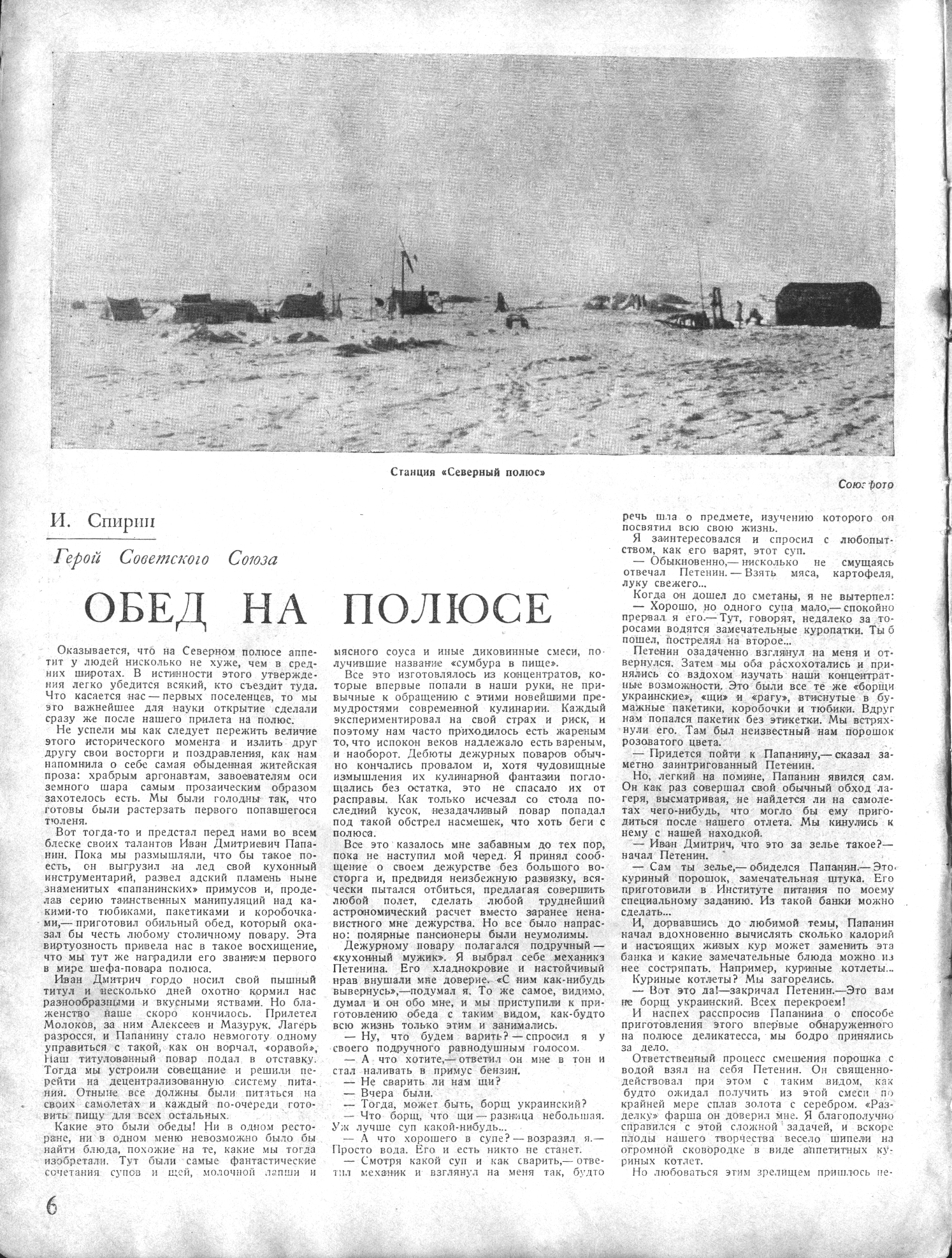Спирин И.Обед на полюсе//Огонёк 1938 №6 с.6-8