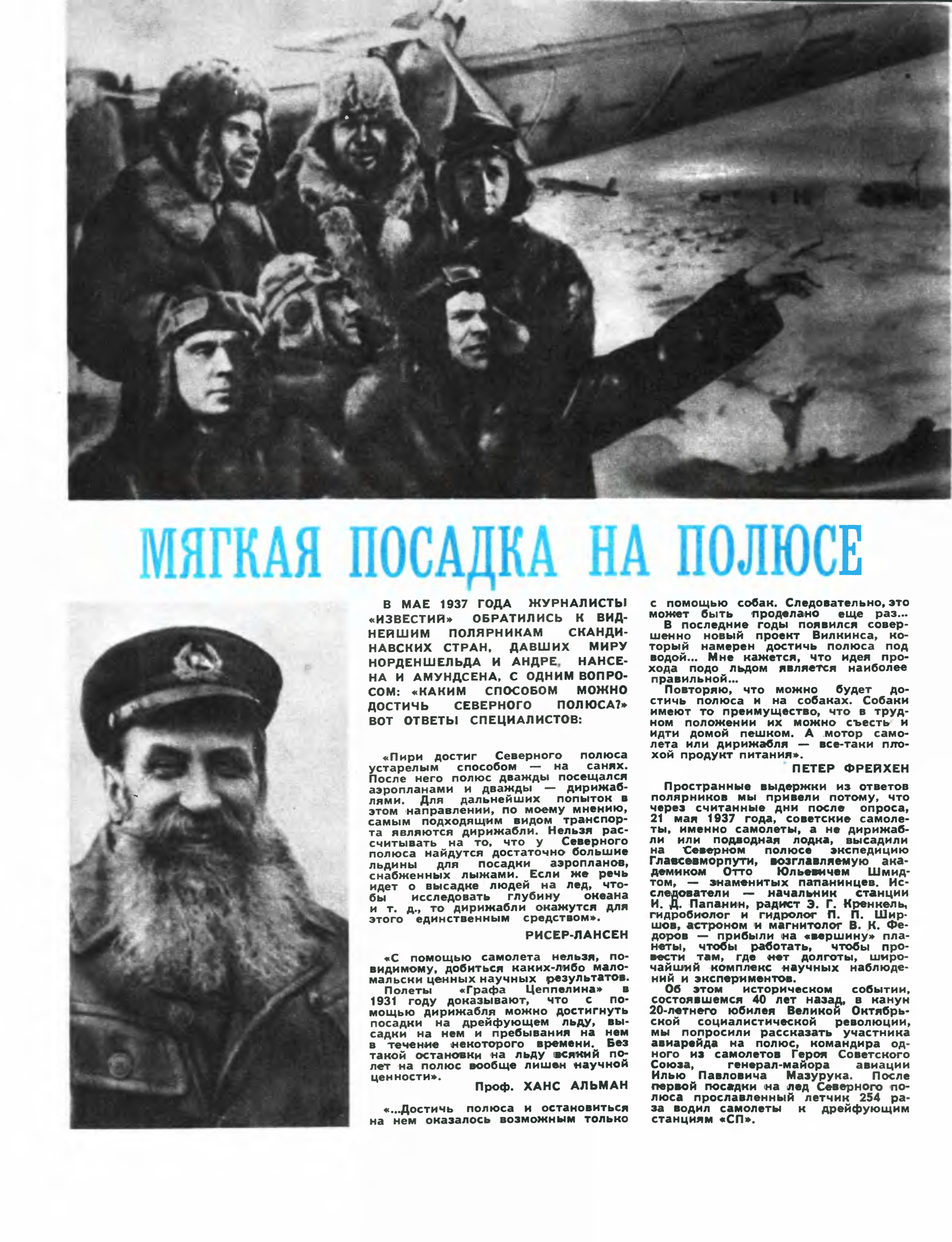 В МАЕ 1937 ГОДА ЖУРНАЛИСТЫ «ИЗВЕСТИЙ» ОБРАТИЛИСЬ К ВИДНЕЙШИМ ПОЛЯРНИКАМ СКАНДИНАВСКИХ СТРАН, ДАВШИХ МИРУ НОРДЕНШЕЛЬДА И АНДРЕ. НАНСЕНА И АМУНДСЕНА, С ОДНИМ ВОПРОСОМ: «КАКИМ СПОСОБОМ МОЖНО ДОСТИЧЬ СЕВЕРНОГО ПОЛЮСА?» ВОТ ОТВЕТЫ СПЕЦИАЛИСТОВ: