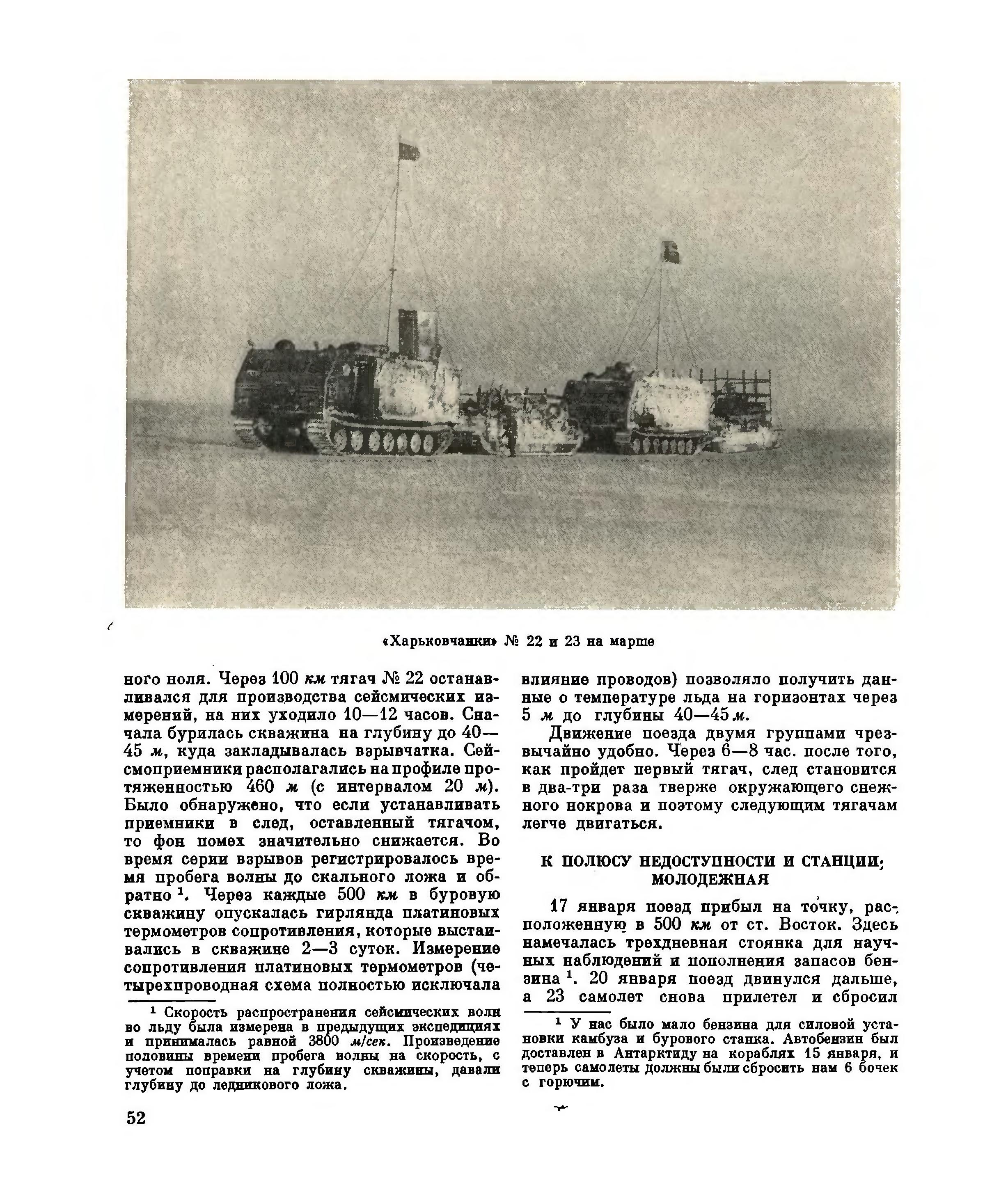 К ПОЛЮСУ НЕДОСТУПНОСТИ И СТАНЦИИ МОЛОДЕЖНАЯ17 января поезд прибыл на точку, расположенную в 500 км от ст. Восток. Здесь намечалась трехдневная стоянка для научных наблюдений и пополнения запасов бензина {1}.