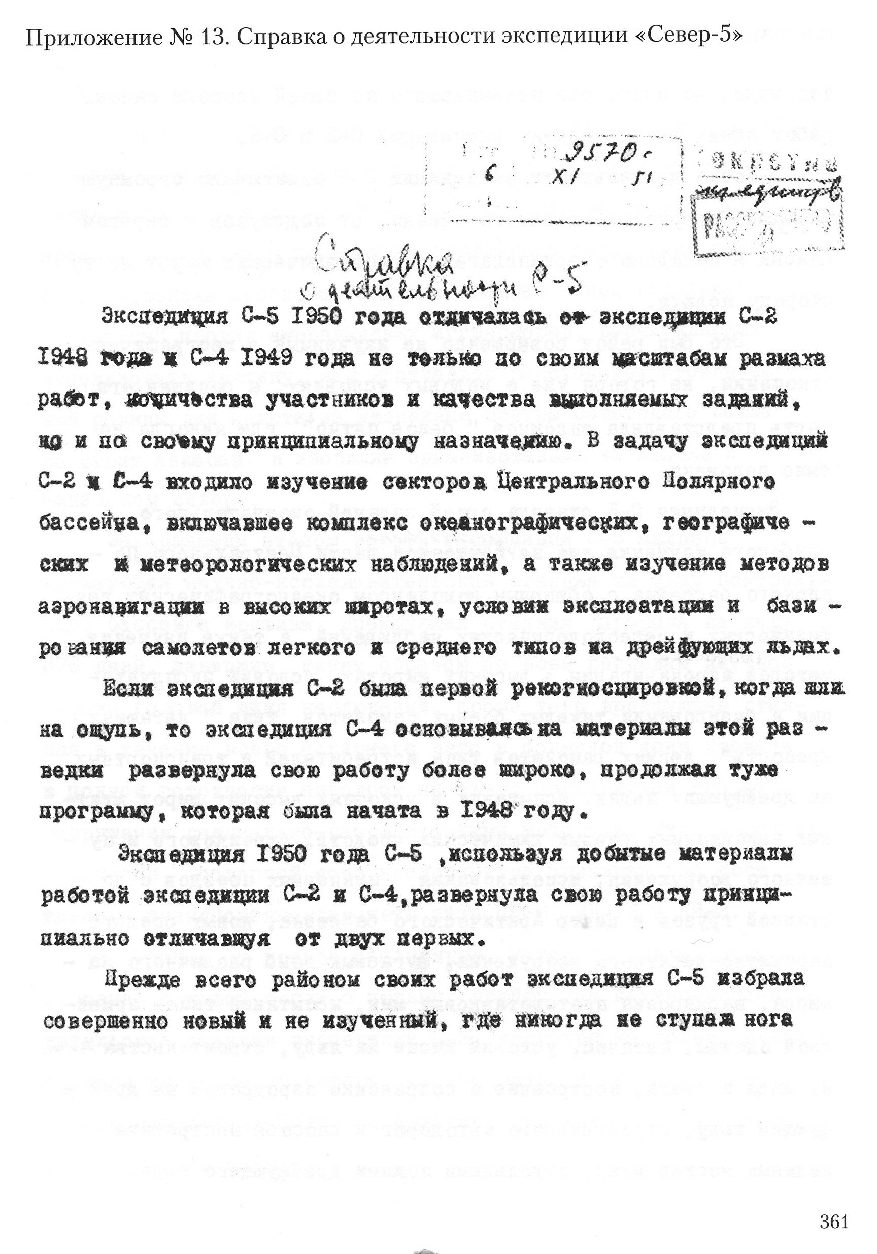 Неполная выписка из документов по экспедиции "Север-5" ("С-5", "Чайка").