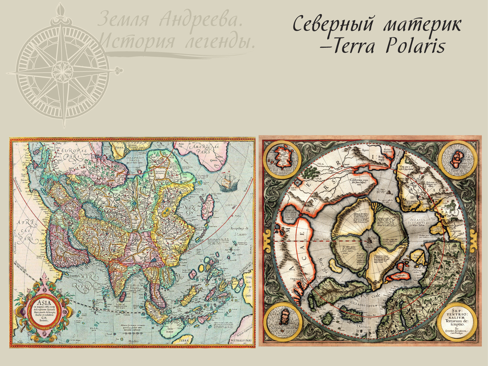 С древних времен существовала легенда о том, что в центре Северного Ледовитого океана расположен огромный континент. Изображение этого континента появлялось на многочисленных географических картах. Наиболее известной из карт является изданная в конце XVI века карта мира Герарда Меркатора. На карте Азии Северный материк, названный TERRA POLARIS, нависает над азиатским континентом. На меркаторской карте полярной области приведено полное изображение TERRA POLARIS.