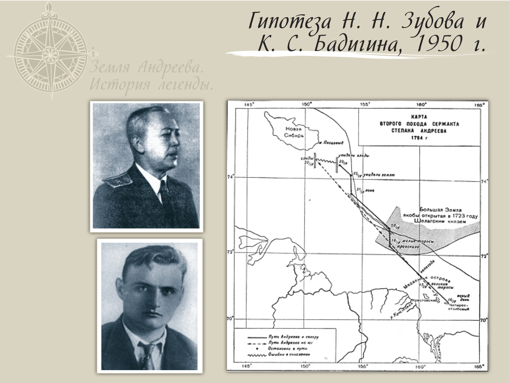 Перед тем как встать на сторону той или иной гипотезы, наверное, следует понять о какой “Земле Андреева” мы говорим. О той что видел сержант Андреев мы имеем слишком невнятные данные, позволяющие предположить практически любое направление его похода.