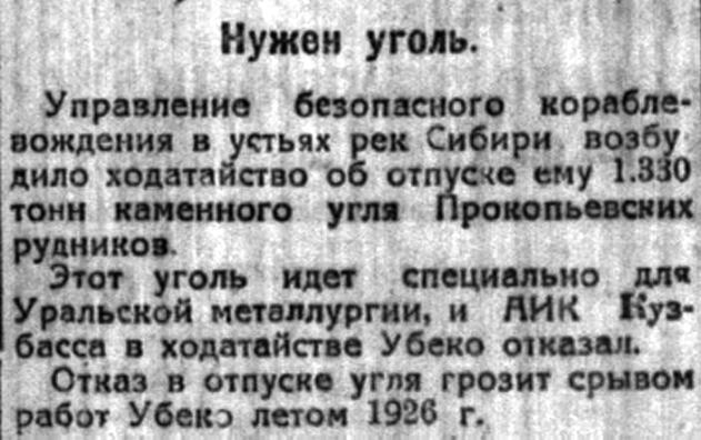 Газета "Советская Сибирь", 1925, № 159 (1925-07-15)Северная экспедициия Убекосибири.(Письмо из Омска).На днях из Омска вышла в ежегодное, шестое по счету, плавание, северная экспедиция Убекосибири в составе трех судов:«Неупокоев», «Прибой» и «Торос».