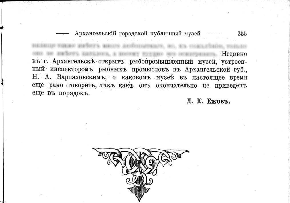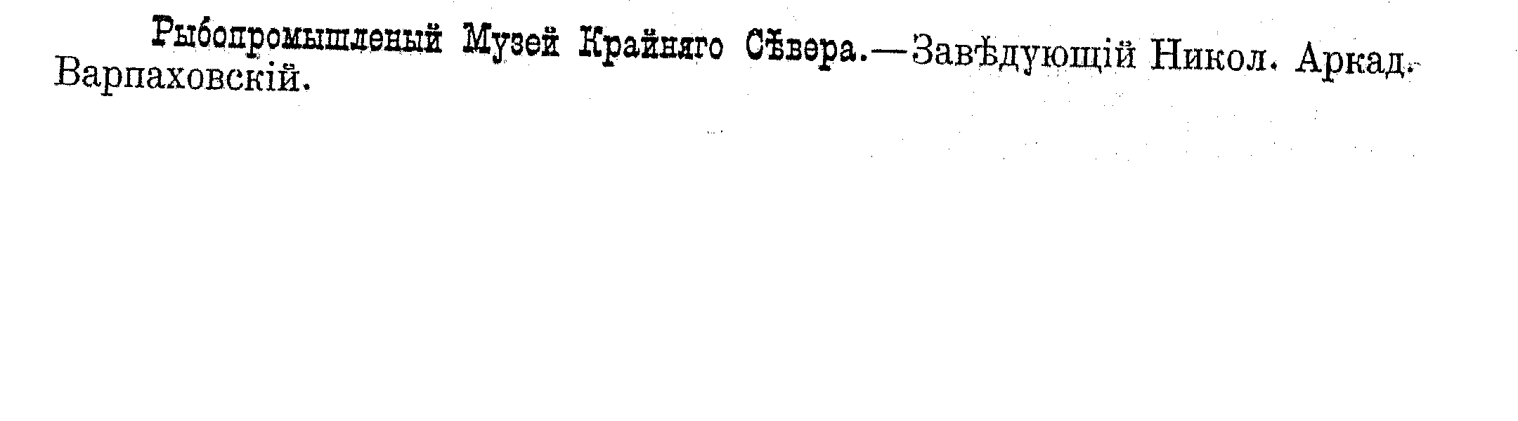 Врадий В.П.Рыбопромышленный музей Крайнего Севера. – Архангельск: Губ. тип., 1910.