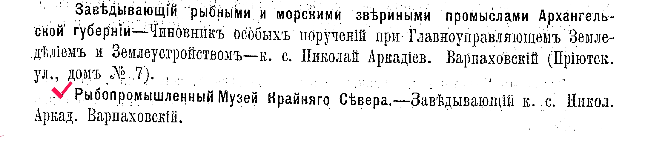 заведующего рыбными и морскими промыслами Архангельской губернии.