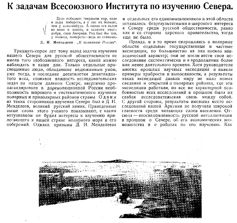 Ни в одной стране арктические исследования не пользуются такой популярностью и глубоким сочувствием самых широких масс, как в Советском Союзе. Об этом с поразительной яркостью свидетельствует то исключительное внимание, которым сопровождалась знаменитая эпопея мужественных челюскинцев во главе с проф. О. Ю. Шмидтом.