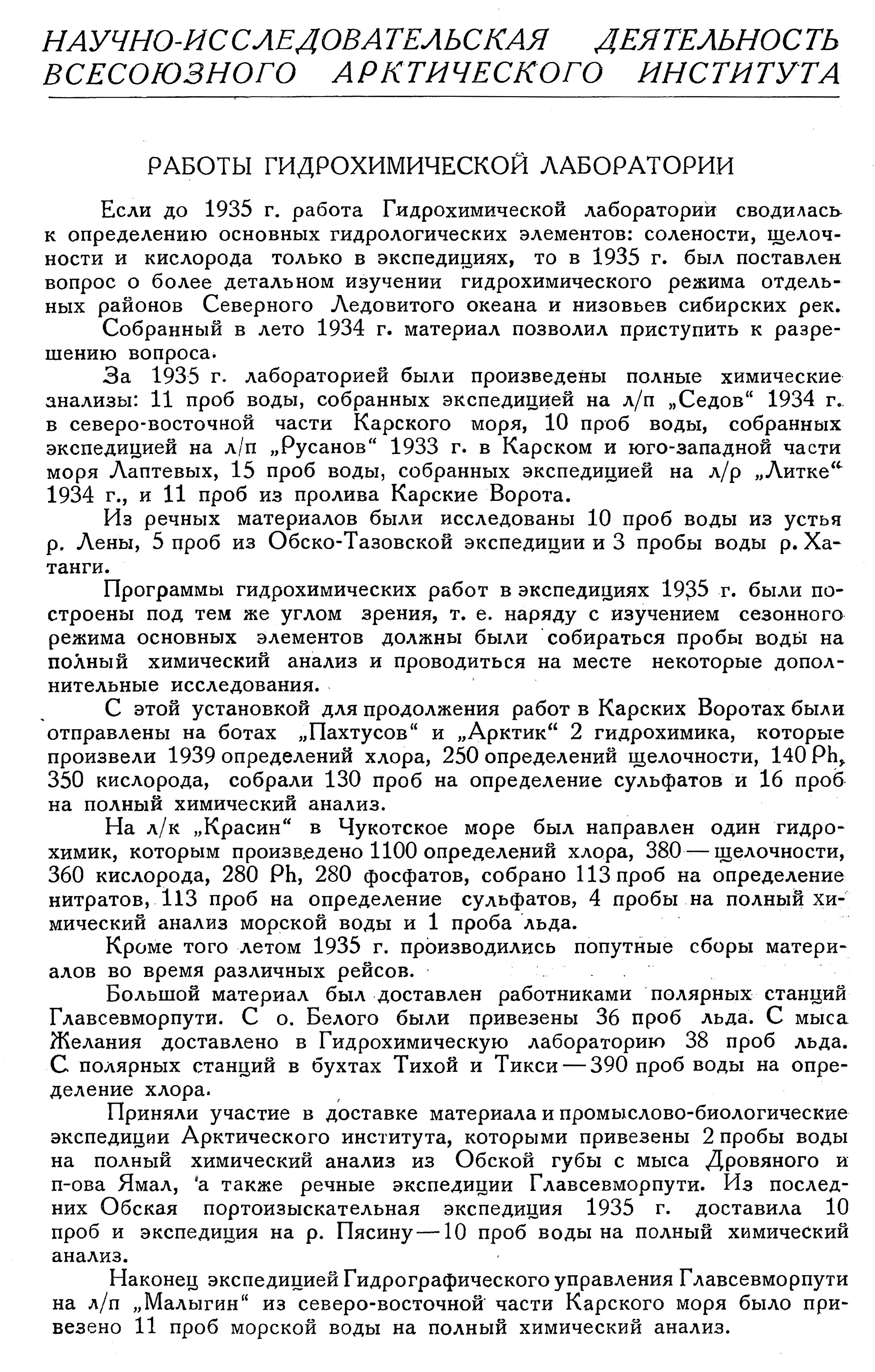 РАБОТЫ РАДИОМЕТРИЧЕСКОЙ ЛАБОРАТОРИИ ГЕОЛОГИЧЕСКОГО ОТДЕЛА АРКТИЧЕСКОГО ИНСТИТУТА В 1935 ГОДУ